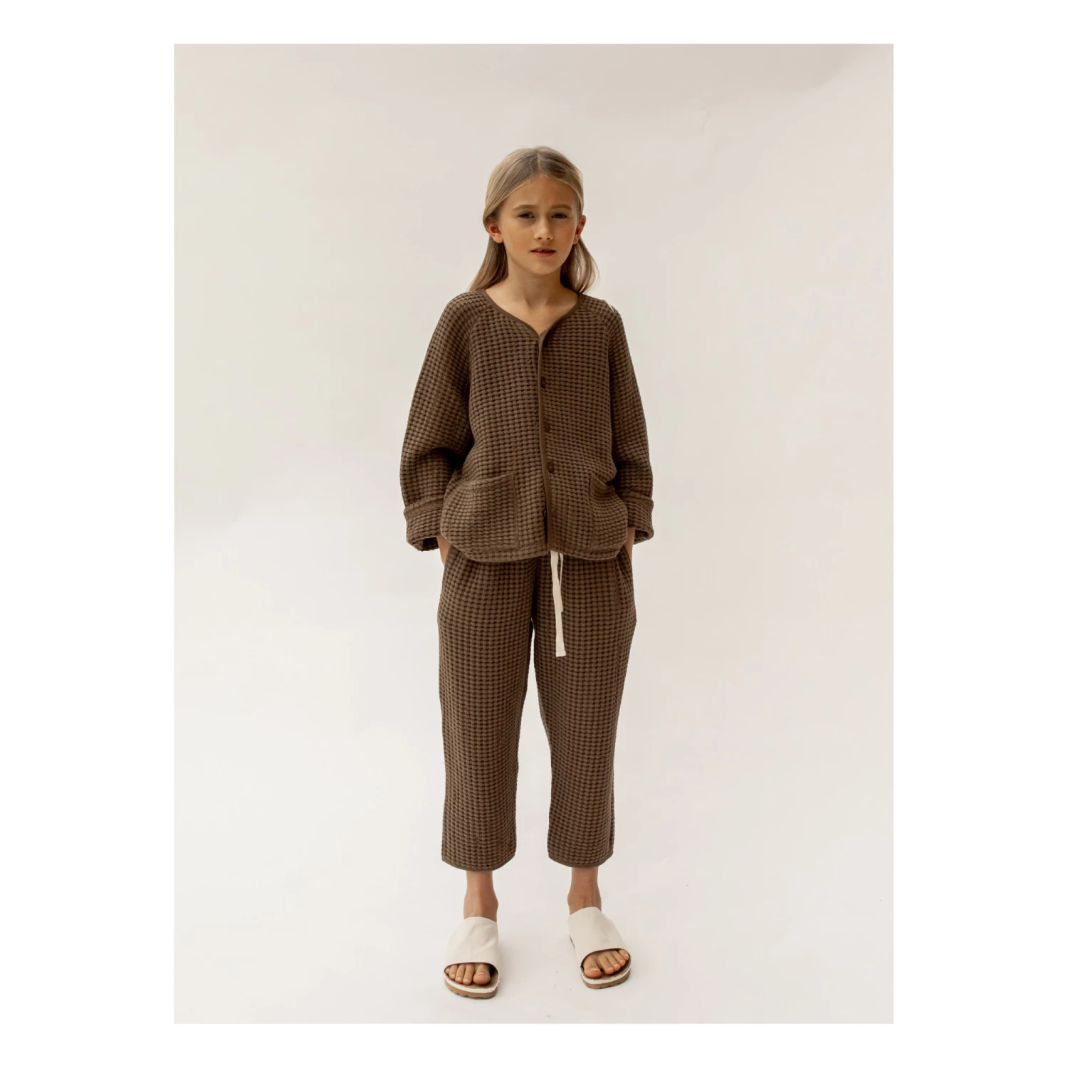 - Drawstring, Waffle effect, V neck, Long sleeves, Front patch pocket(s), Side pockets, Elasticated waist, Comfortable