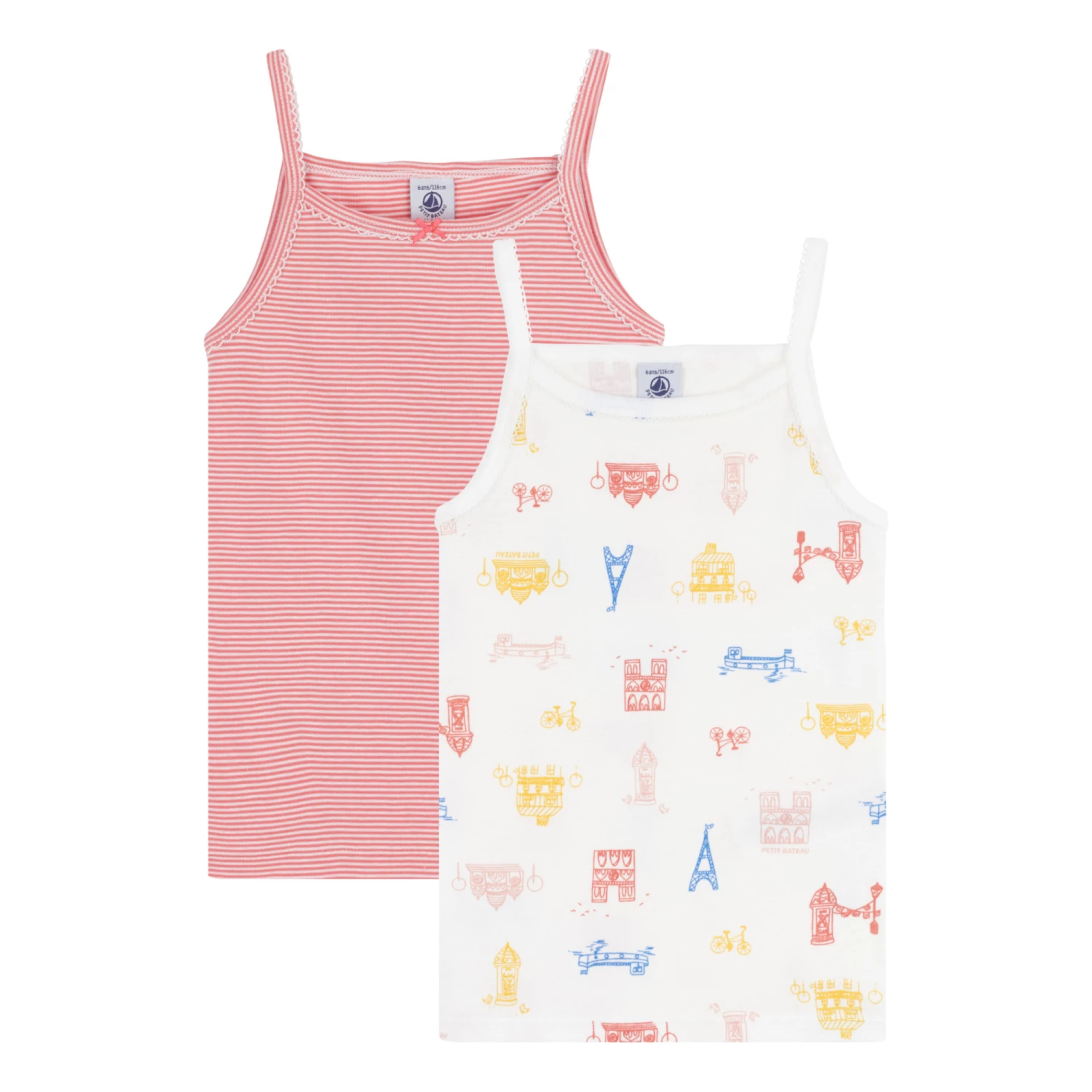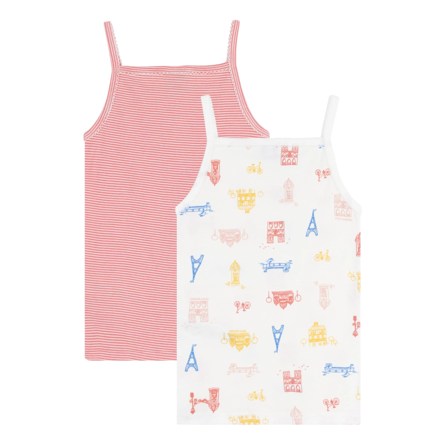 - Decorative bow(s), Crew neck, Picot finish, Thin straps, Comfortable