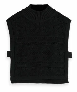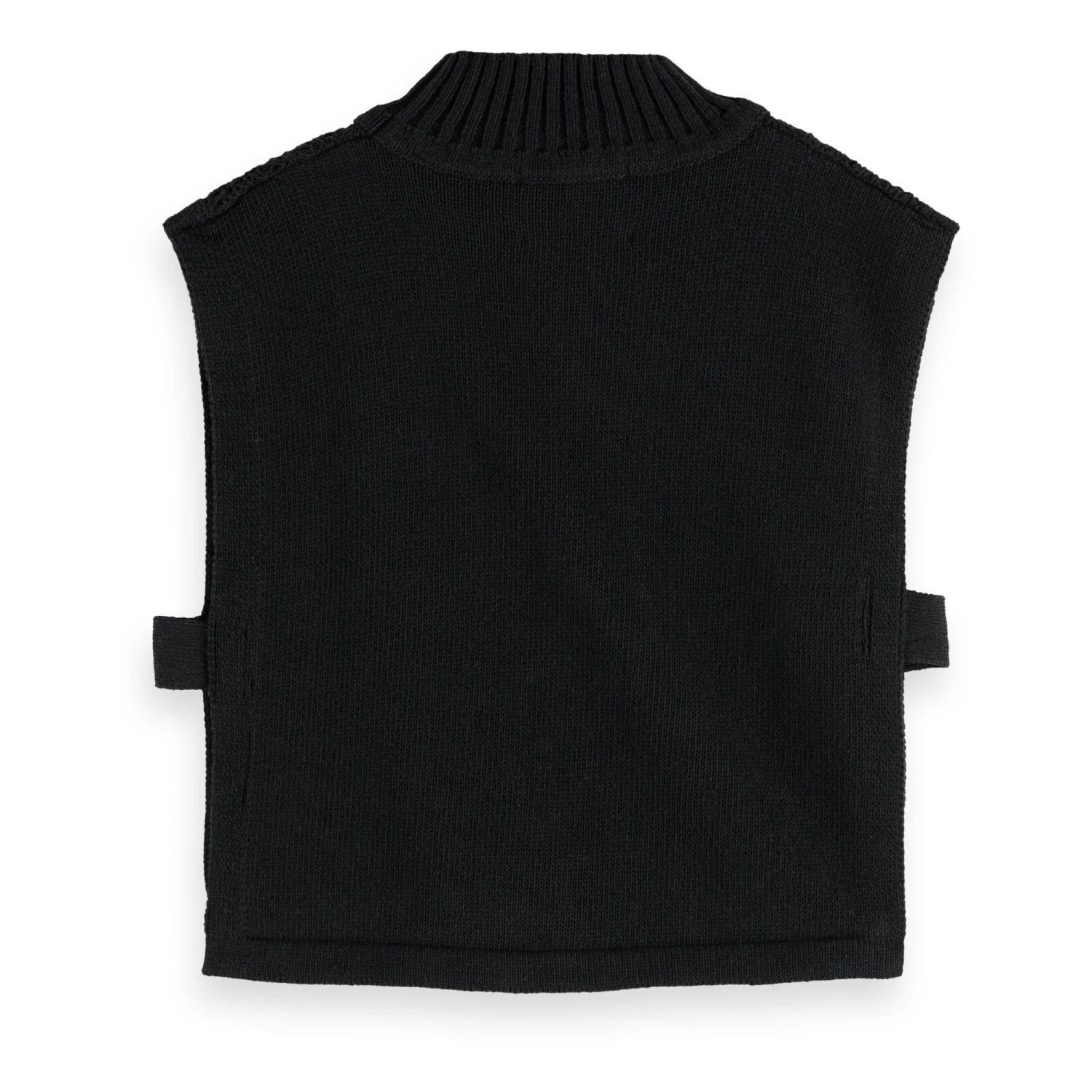 - Slit side(s), Sleeveless, Decorative knit, Ribbed neckband, Turtleneck
