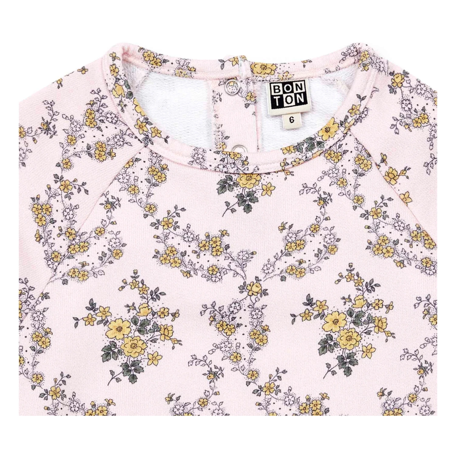 - Garment pulls on, Press stud(s) on the back, Flower print