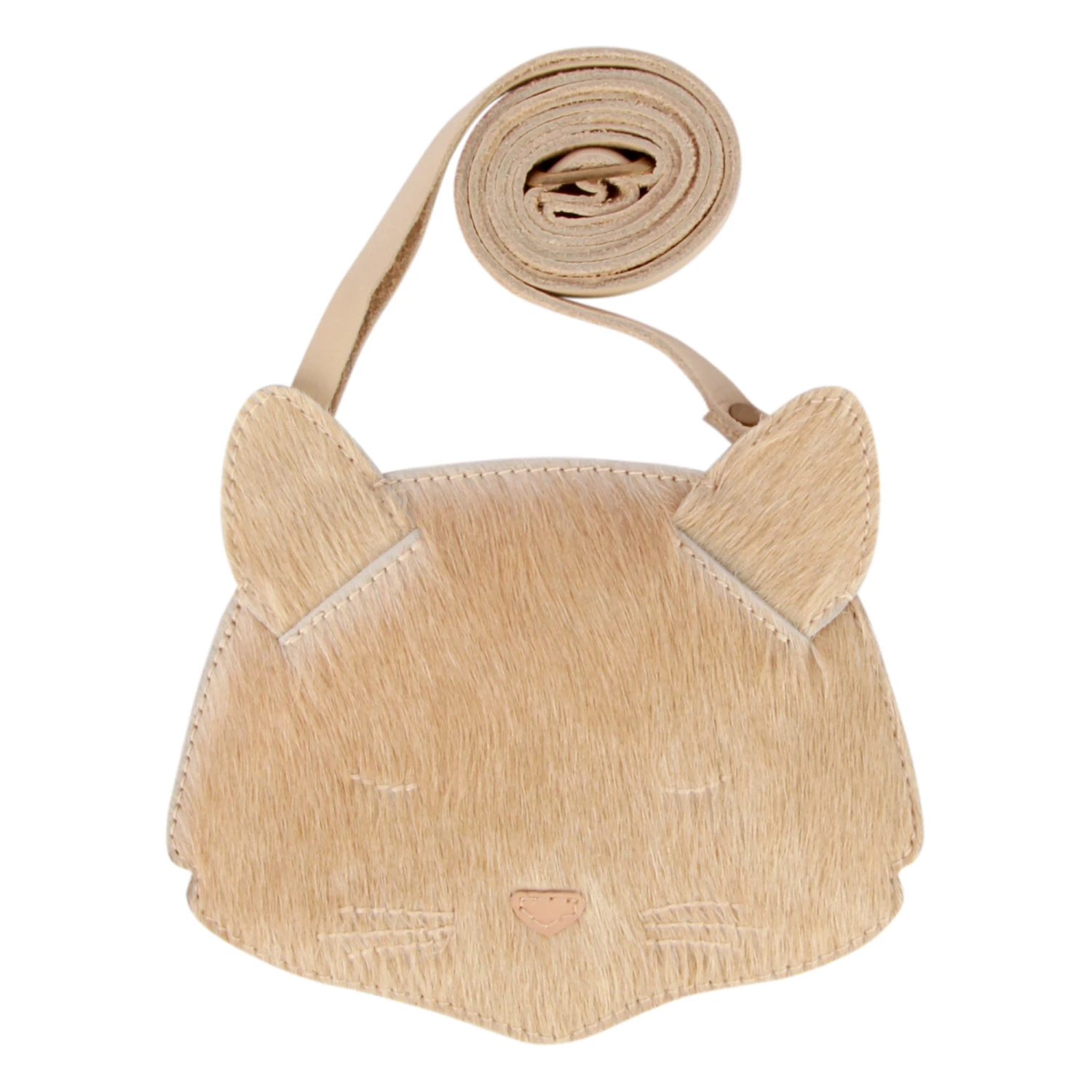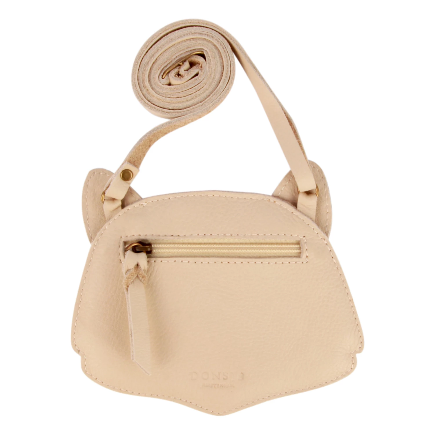 - Details : Back pocket with zip, 1 principal compartment, Zip, Top-stitched border, Handmade, Cat’s ears, Sold in a small box, Adjustable strap, Embossed logo
