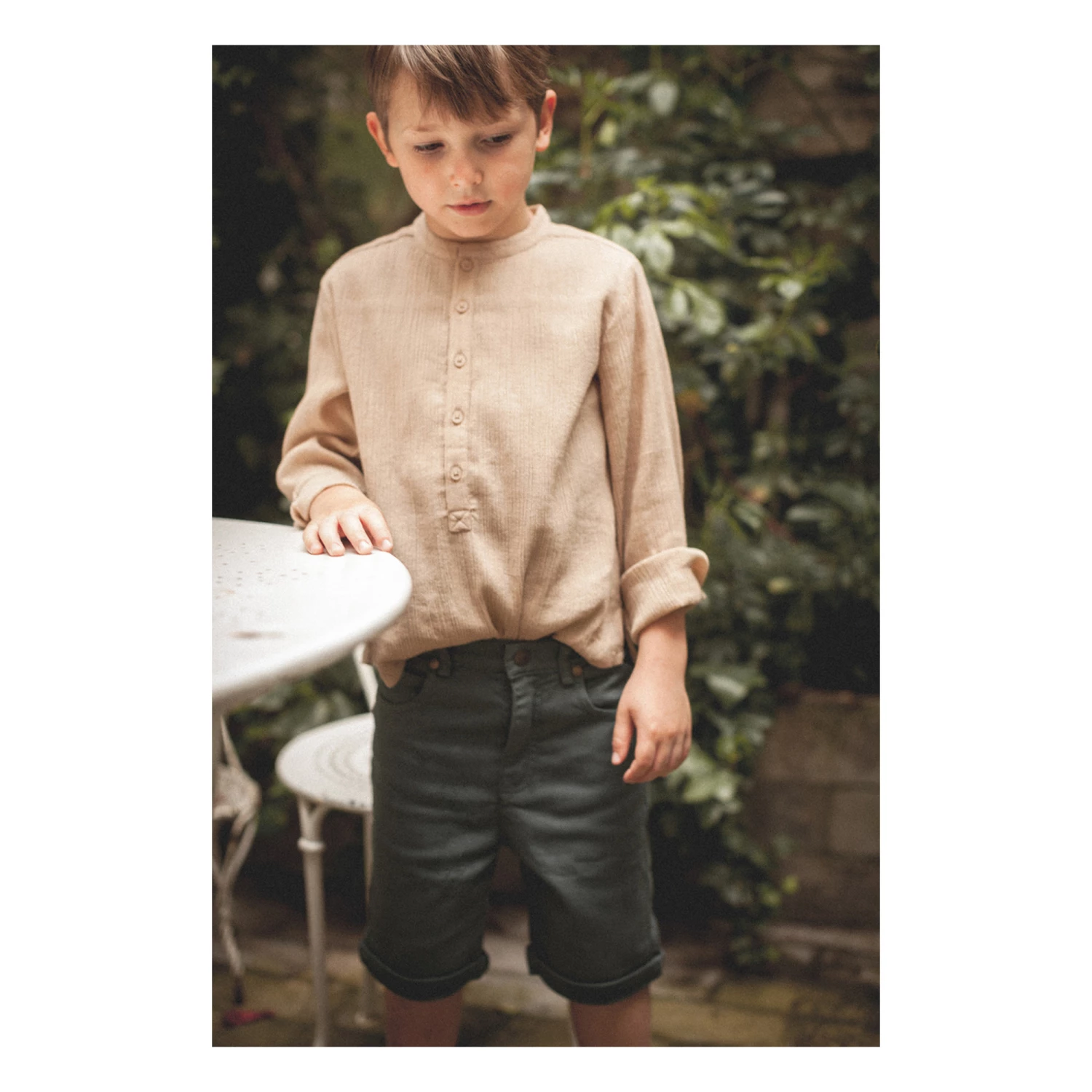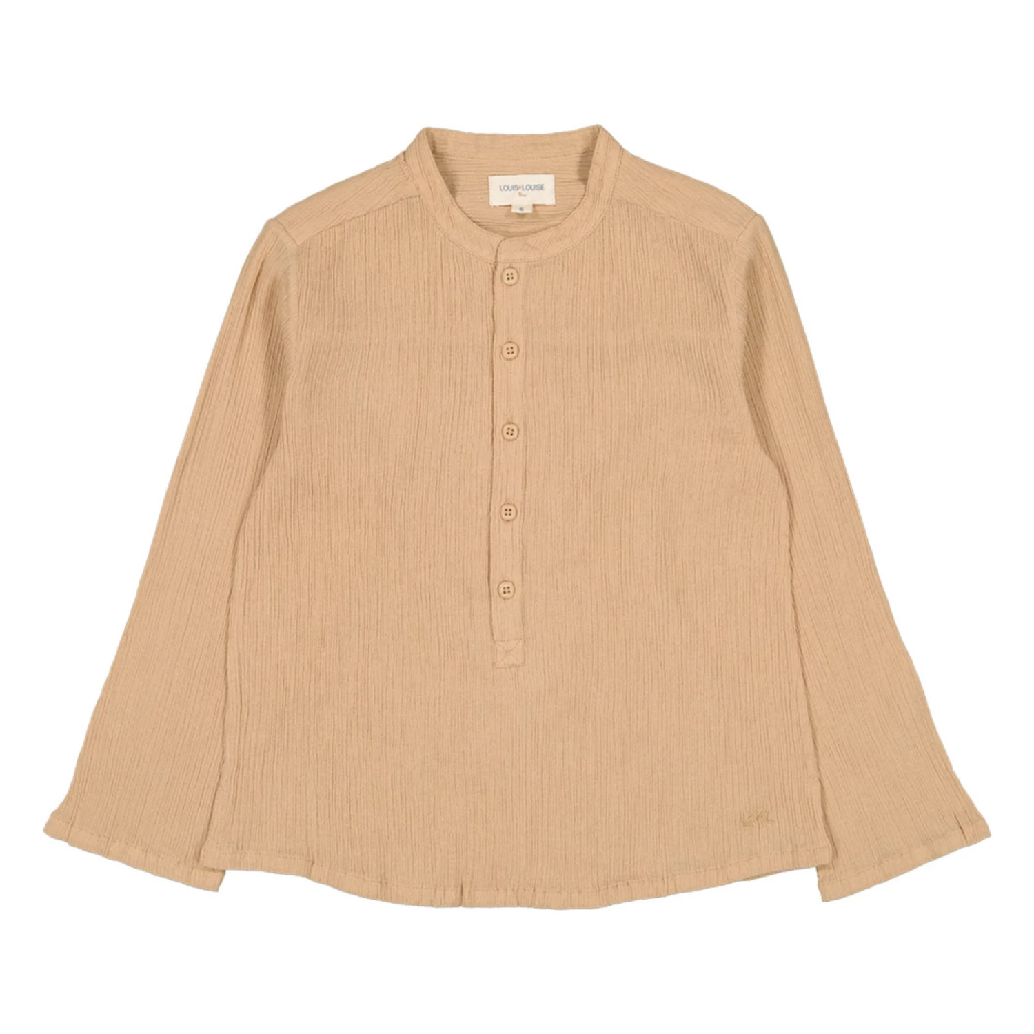 - Contrast stitching, Top stitched, Flowy, Lightweight, Embroidered logo, Long sleeves, Mandarin collar