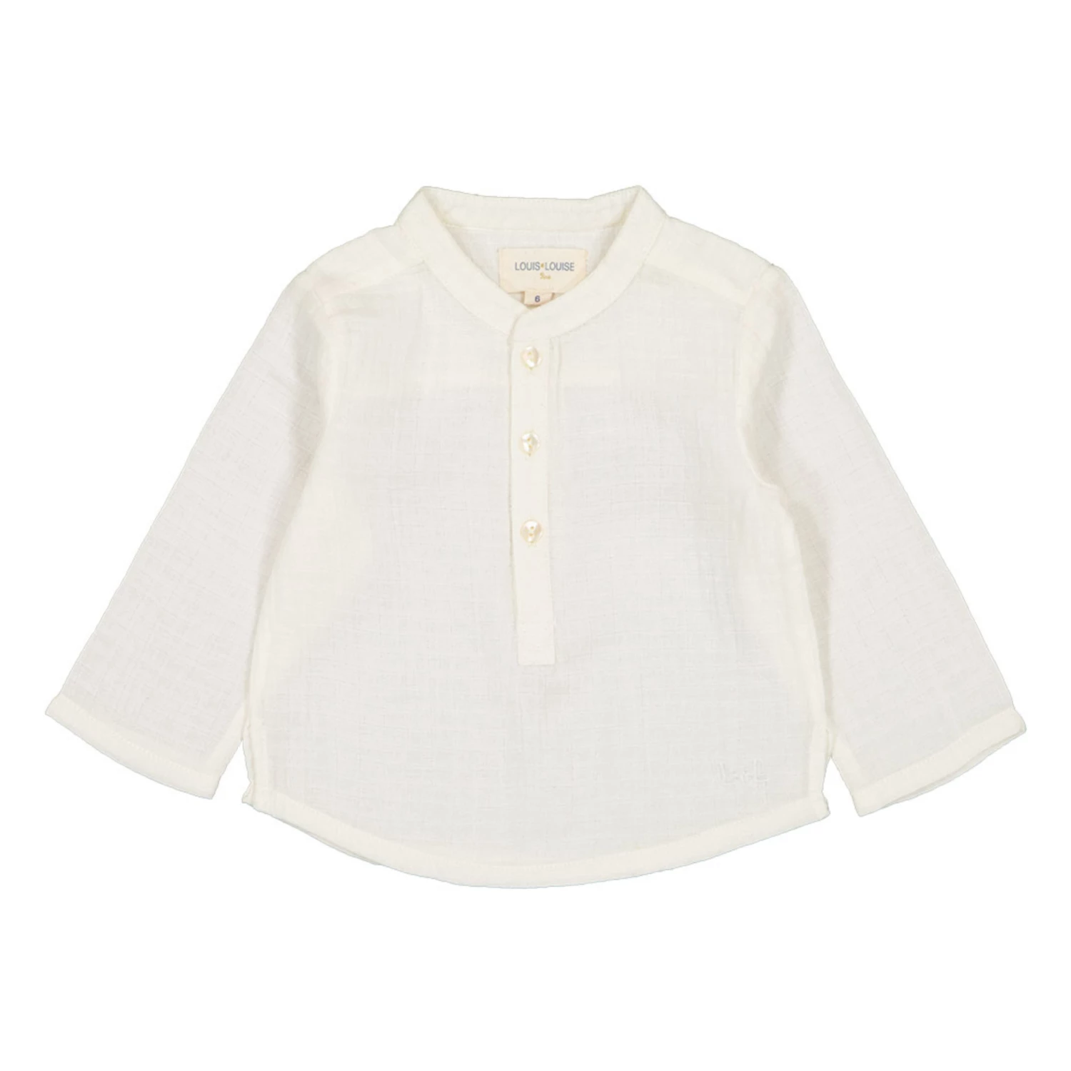 - Contrast stitching, Top stitched, Flowy, Lightweight, Embroidered logo, Long sleeves, Mandarin collar