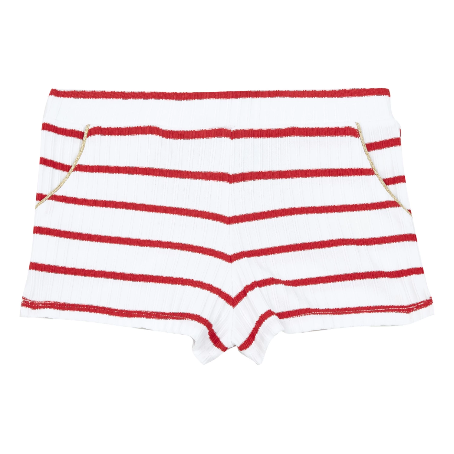 - Details : Sailor stripes, Elastic waist, Side pockets, Gold border, – Comfortable