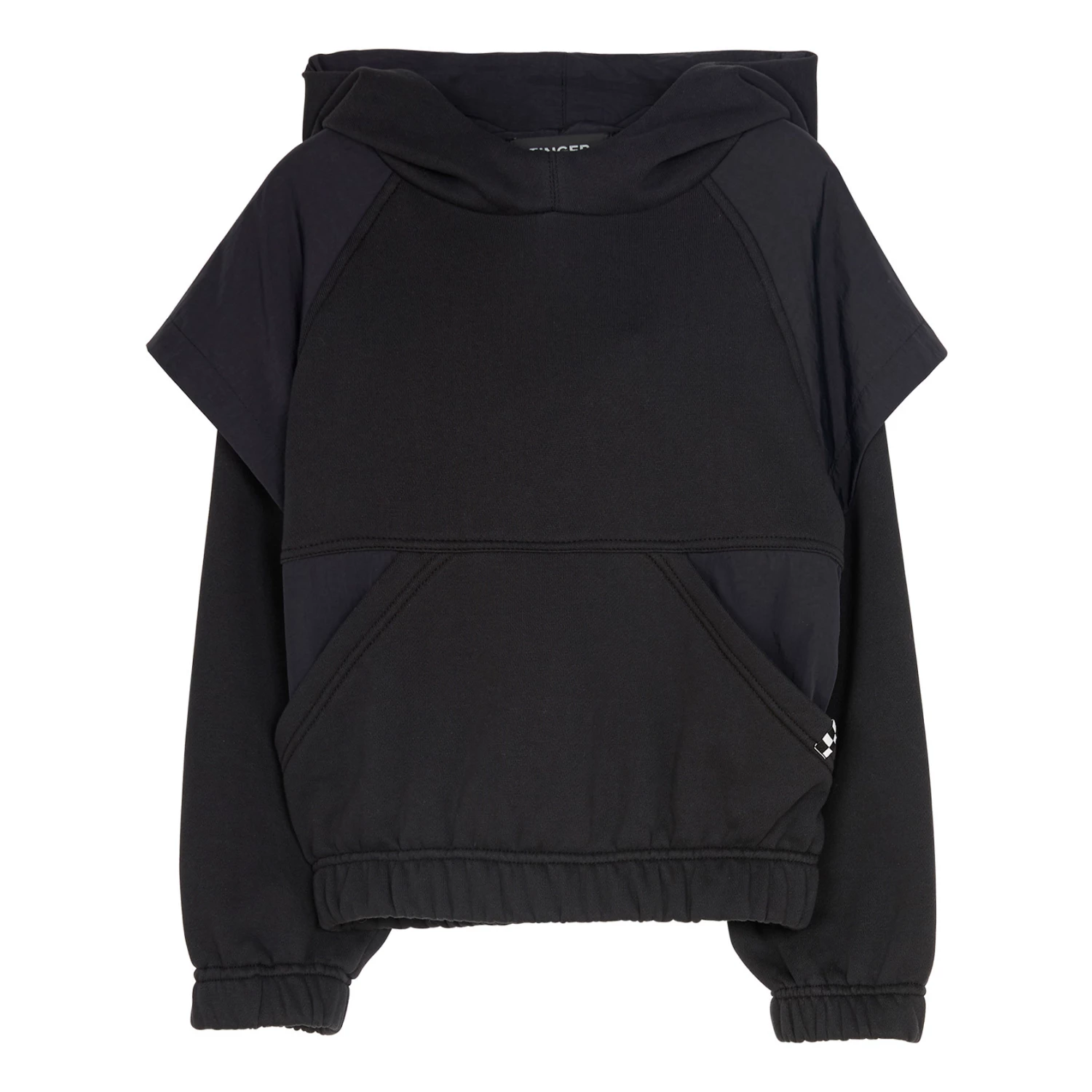 - Elastic at bottom, Long sleeves, Raglan sleeve, Italian pockets, Elastic cuffs, Sewn-in brand label, Hood