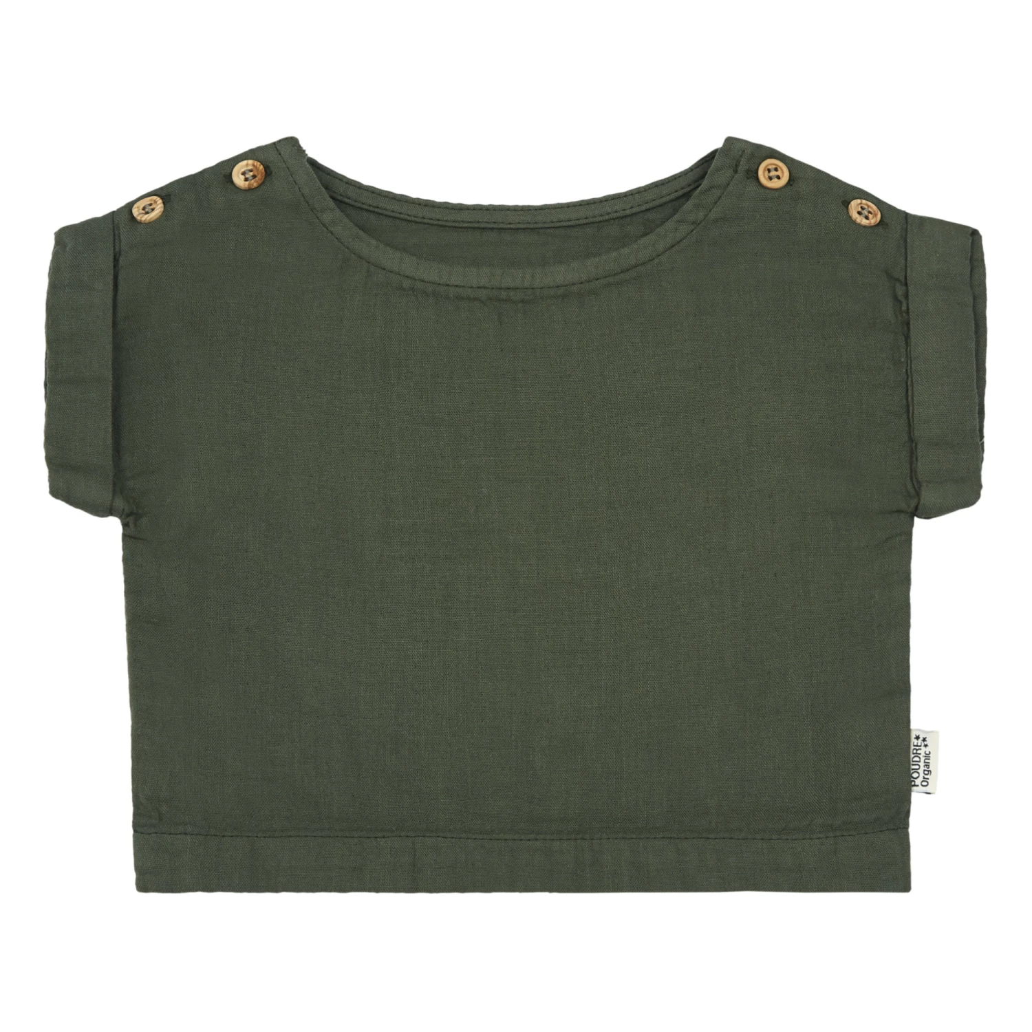 Flash Sale 😍 Line Double Organic Cotton Muslin Blouse Dark green Poudre Organic Fashion Baby, Children 🎉