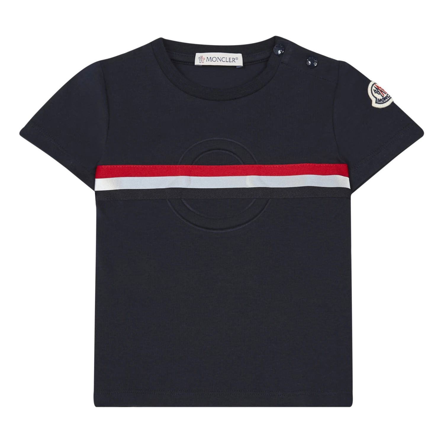 - Details : Block colour, Round neckline, Short sleeves, Popper buttons on shoulder, Felt logo