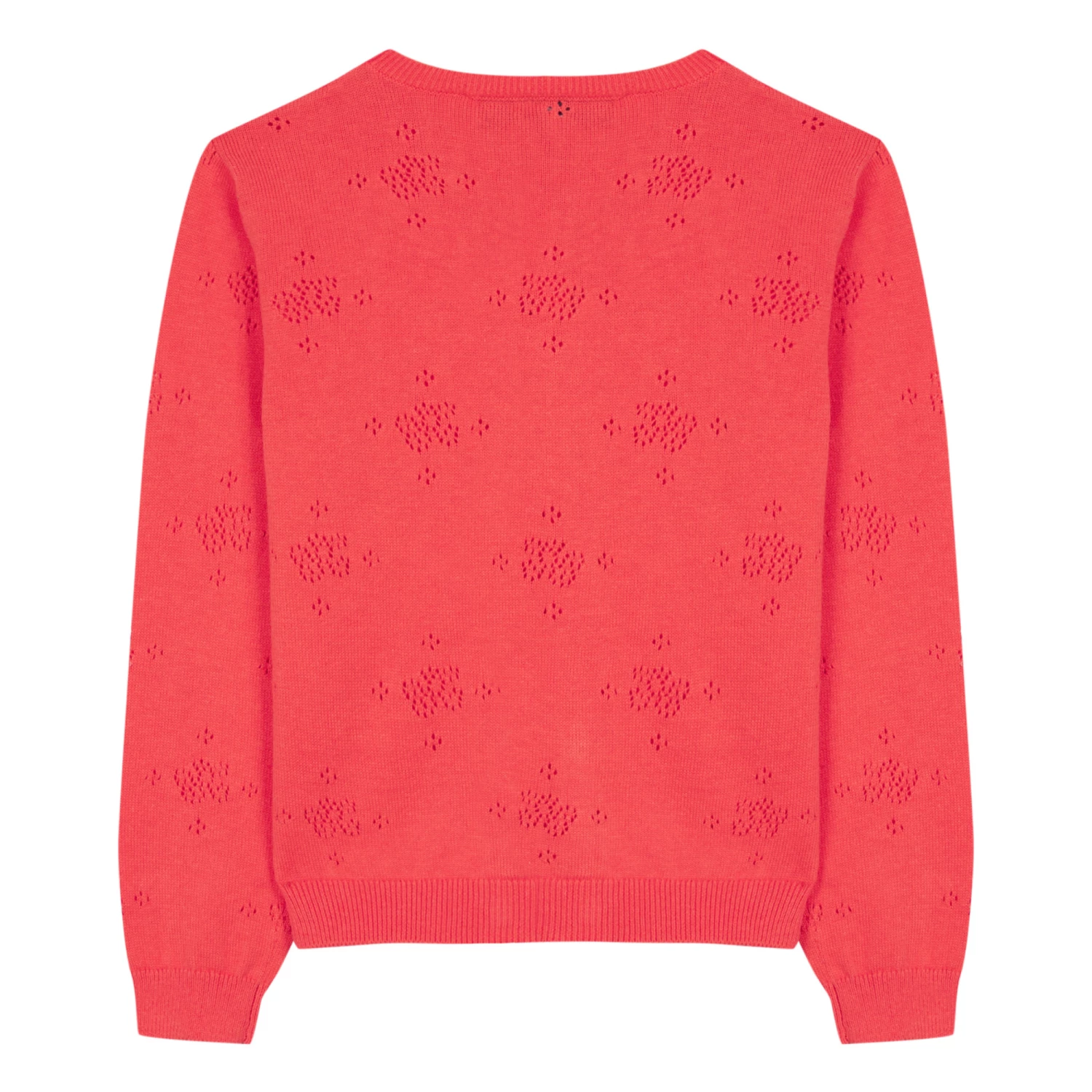 - Crew neck, Long sleeves, Ribbed cuffs, Ribbed edges, Openwork knit, Ribbed neckband