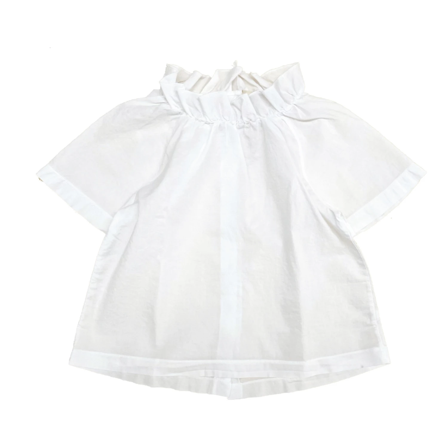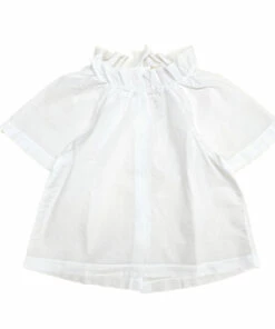 - Short sleeves, Raglan sleeve, Top stitched edges, Gathered collar, Turtleneck, Frilled collar