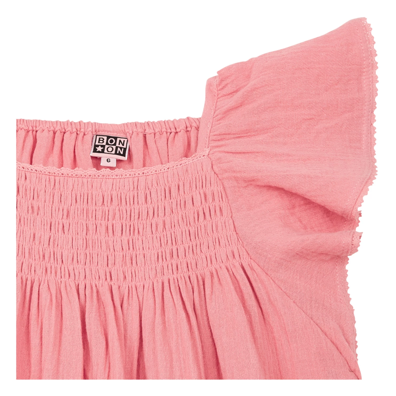 - Elasticated neckline, Ruffle front, Flounce sleeve, Lace collar, Gathered at the back, Picot finish, Lightweight, Smocked shirtfront