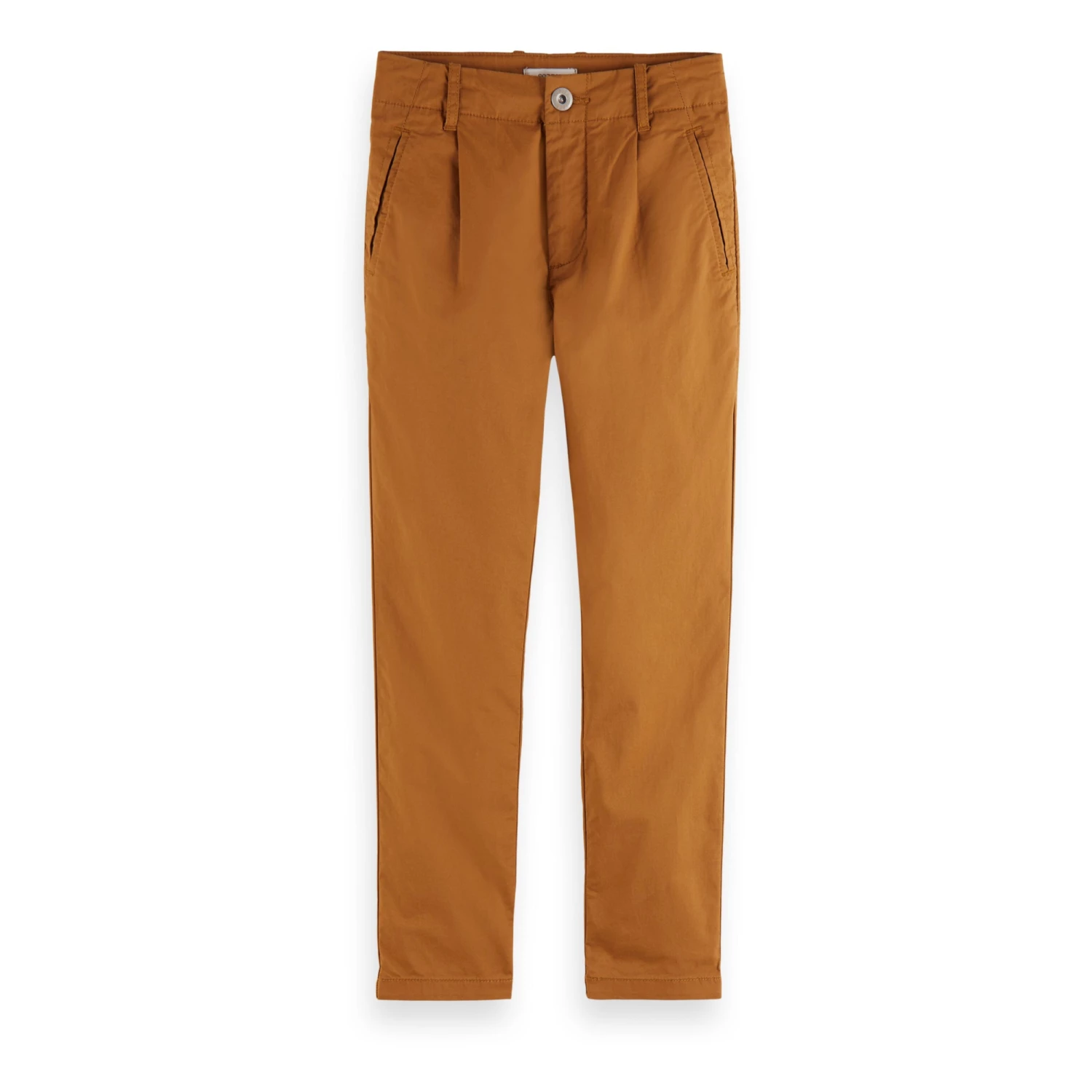 - Dart(s), Top stitched, Inverted pleats, Piped pocket(s) on the back, Belt loops at waist, Side pockets, Sewn-in brand label