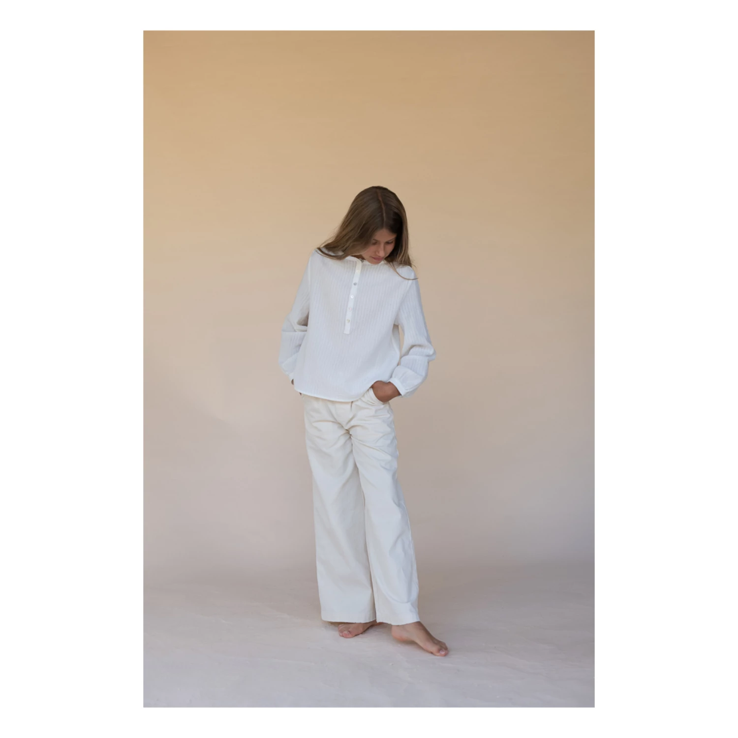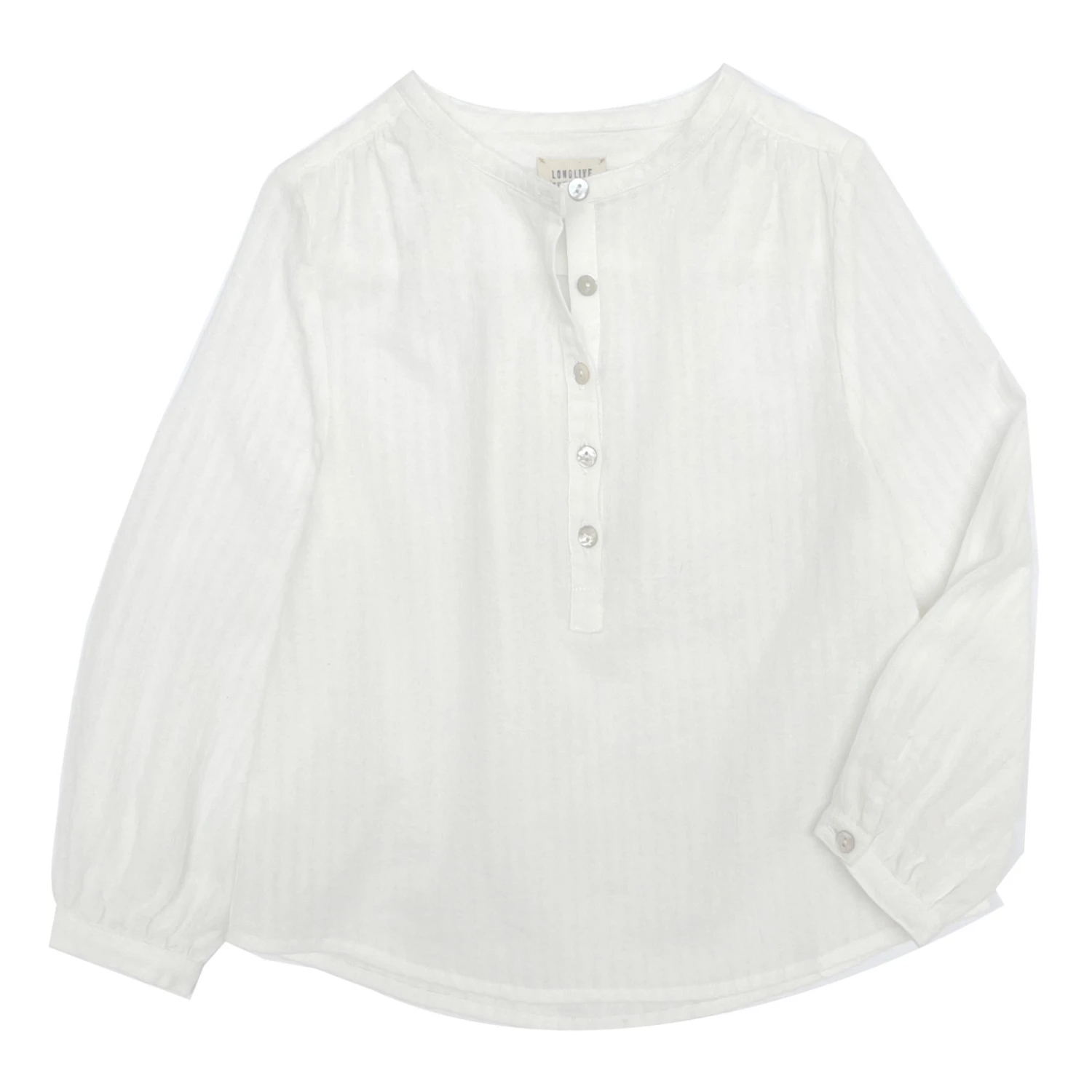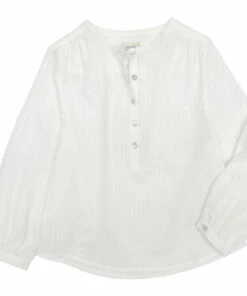 - Lightweight, Puff sleeves, Long sleeves, Buttoned cuffs, Gathered cuffs, Top stitched edges, Gathered at shoulders, Mandarin collar