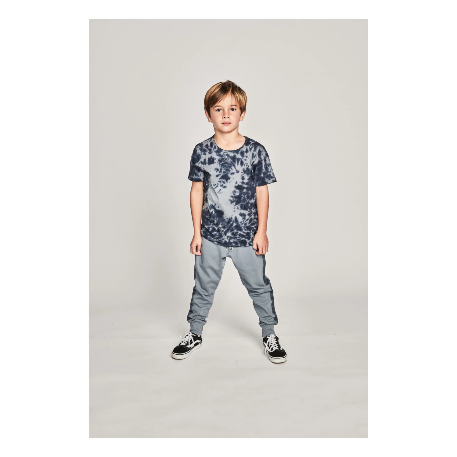 - Garment pulls on, Tie-dye print