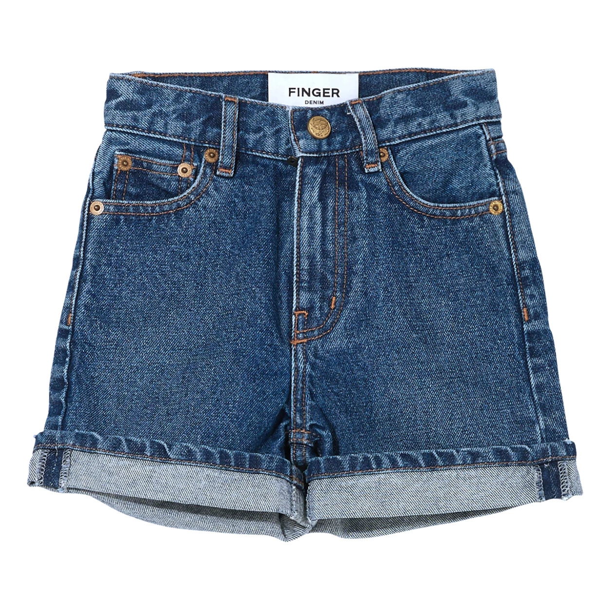 - Details : Short cut, Empire waistline, Belt loops, 5 pockets, Zip, Waist button, Contrast topstitchings, Rivets, Cuff