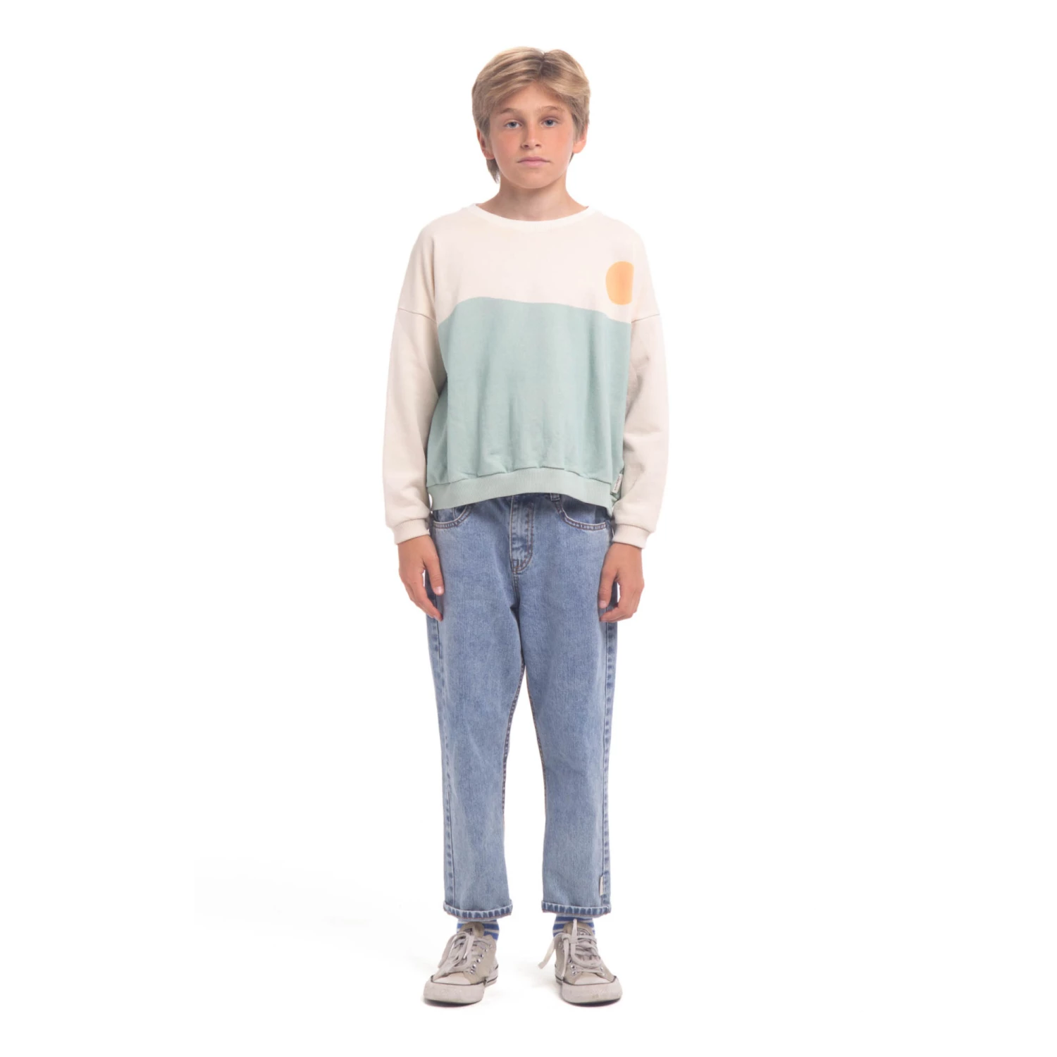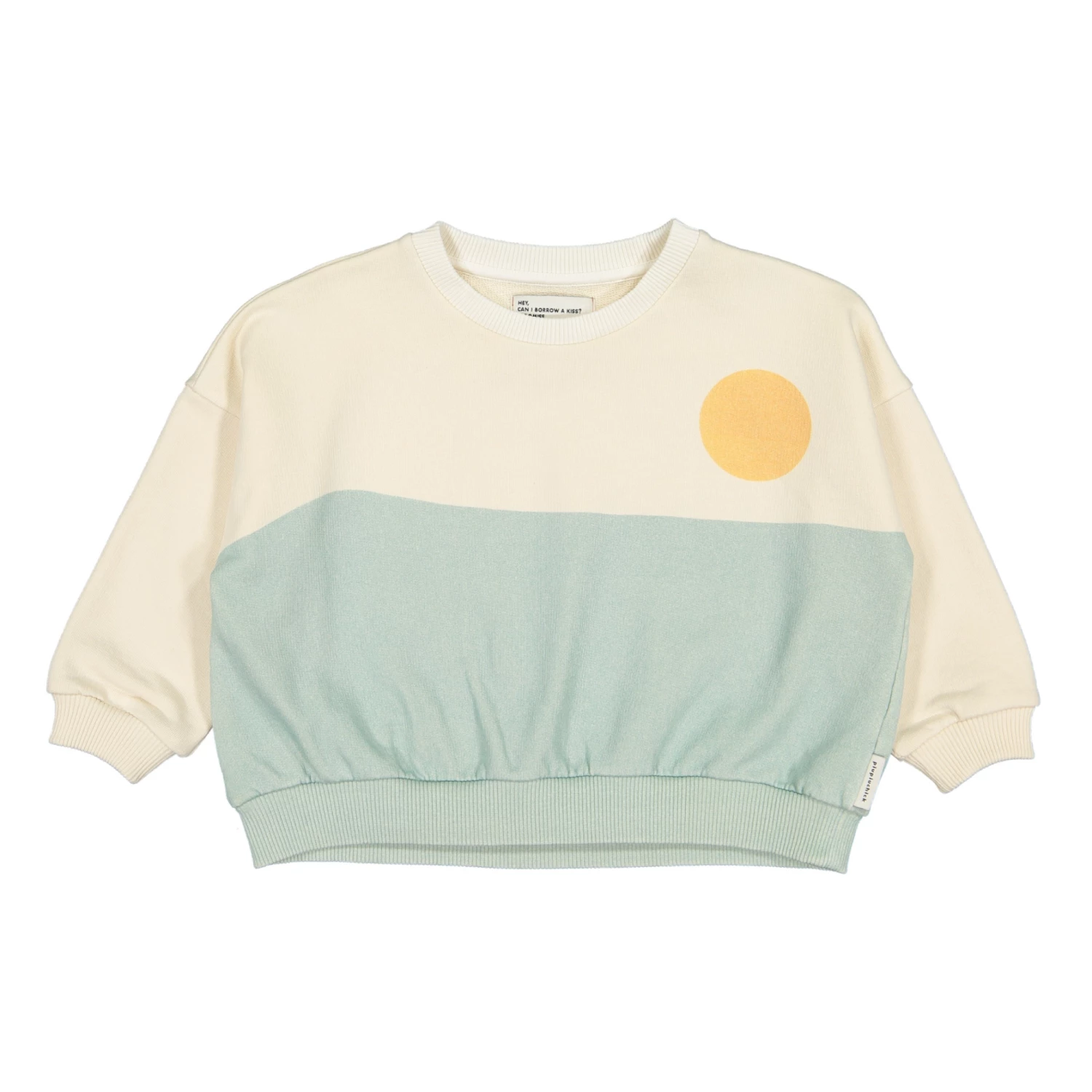 - Elastic at bottom, Crew neck, Long sleeves, Raglan sleeve, Ribbed cuffs, Print on back, Print on front, Ribbed edges, Tricolour, Ribbed neckband