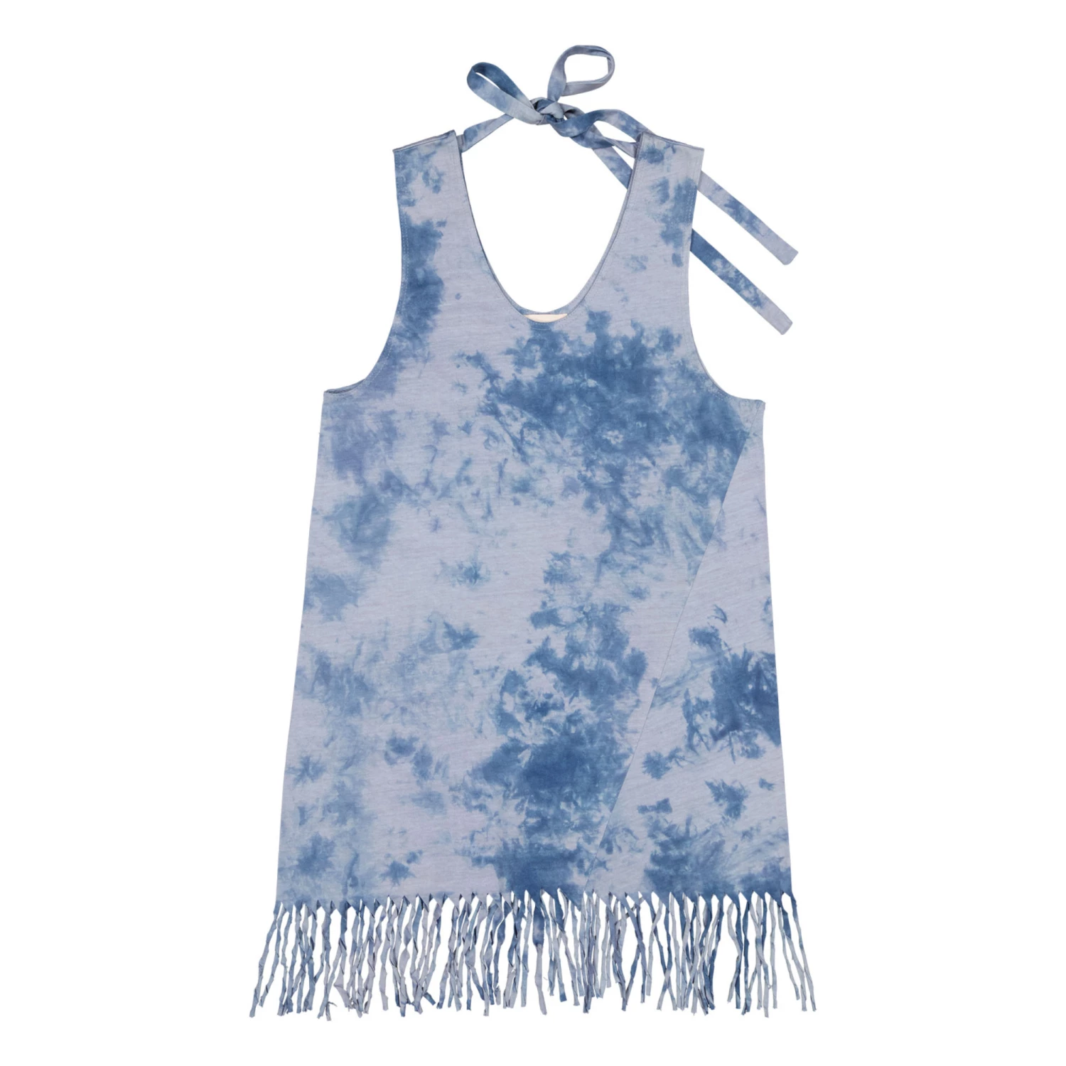 - Low armholes, V neck, Flowy, Fringed edges, Tie up straps, Adjustable straps