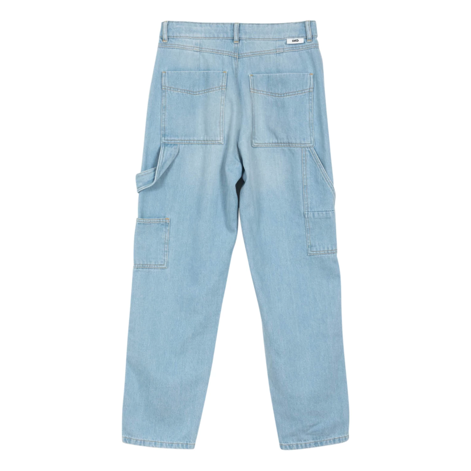 - Coin pocket, Stonewashed, Back patch pocket(s), Studs, Contrasting top stitch, Belt loops at waist, Side pockets, Sewn-in brand label