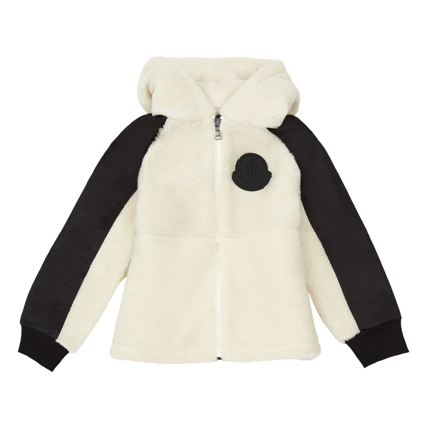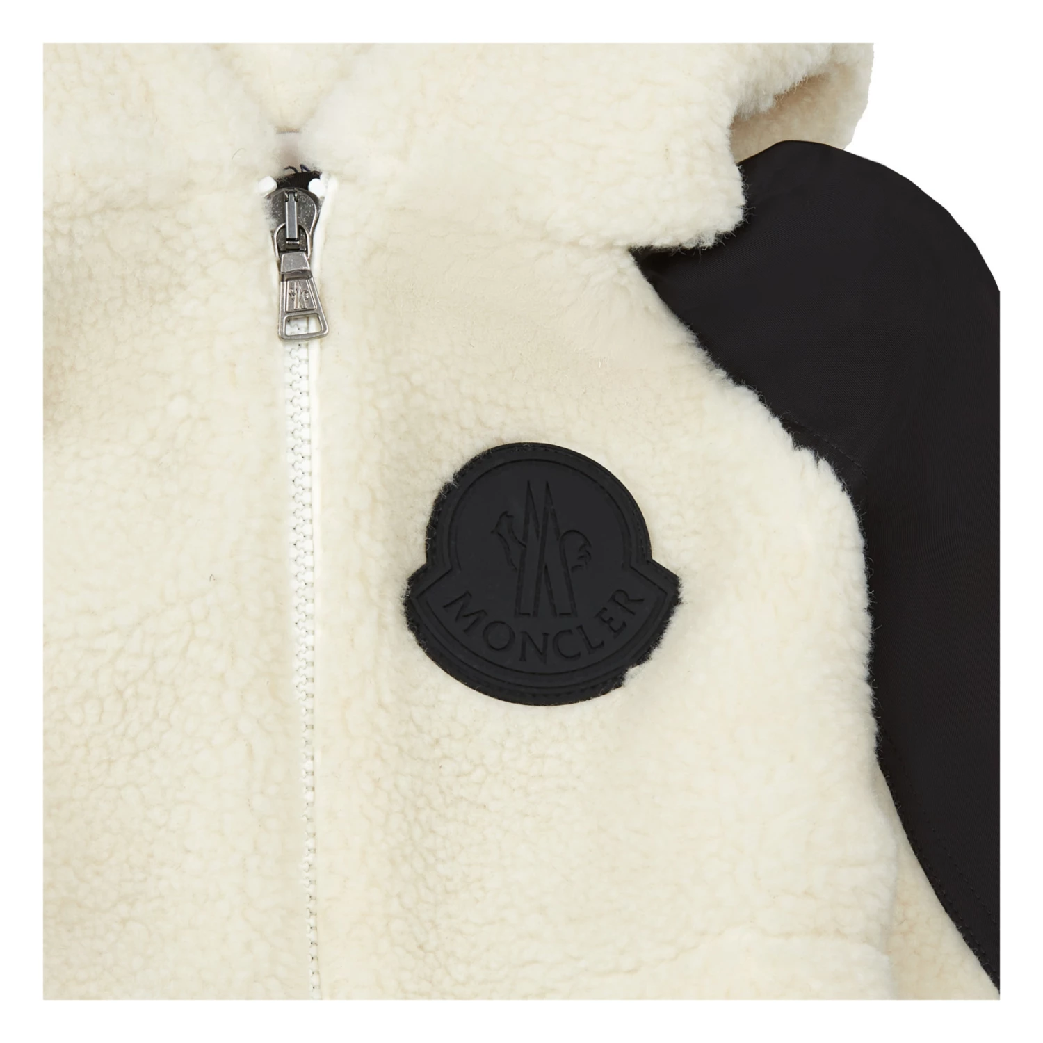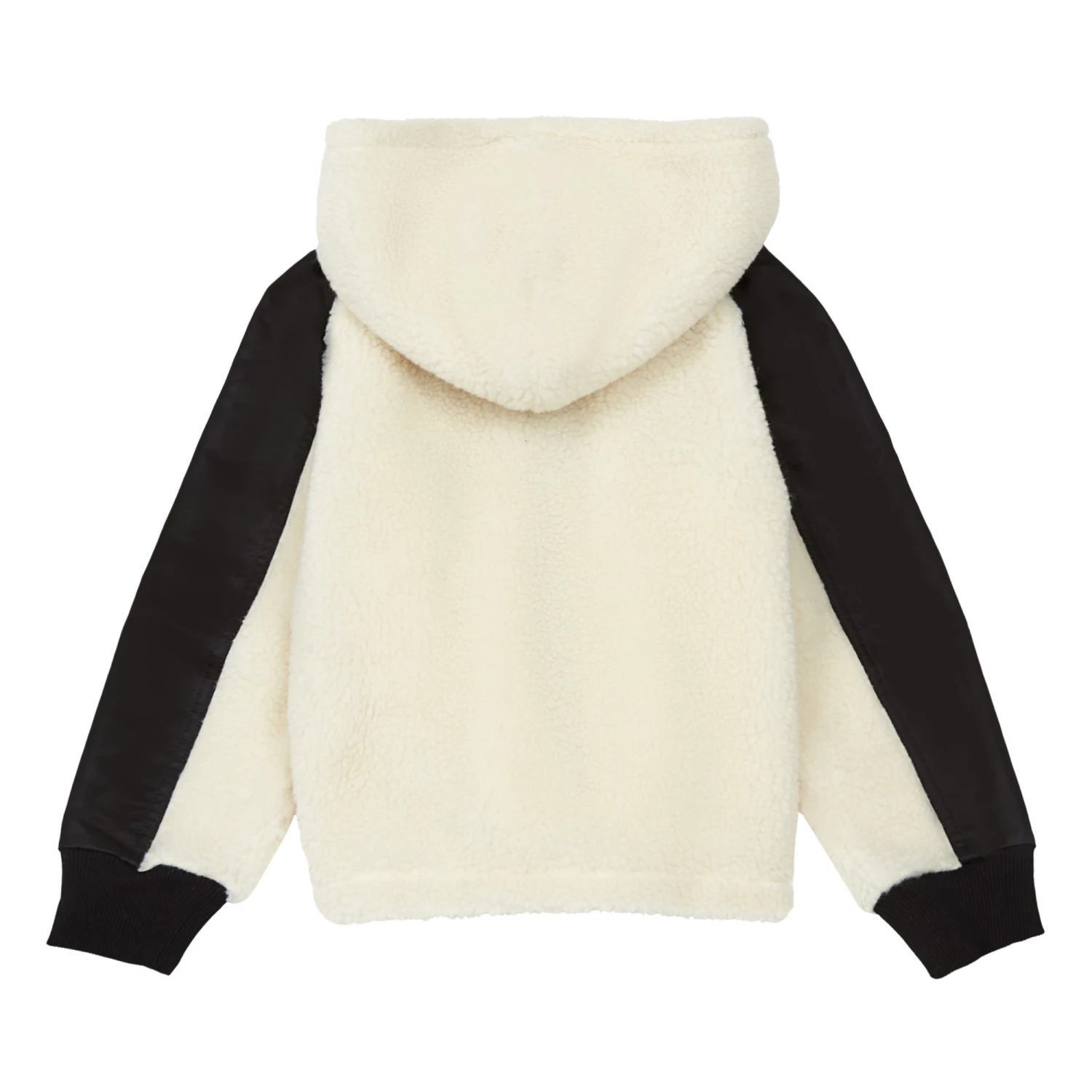 - Silicone logo, Long sleeves, Ribbed edges, Faux-fur hood, Warm and comfortable