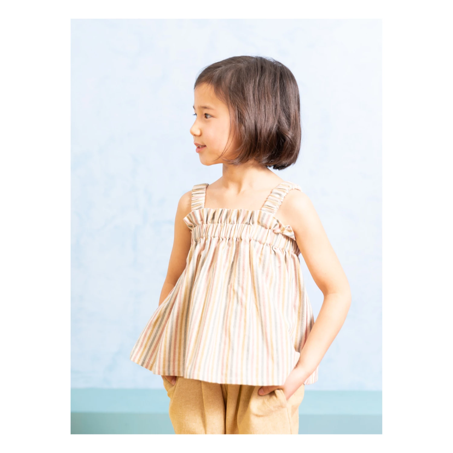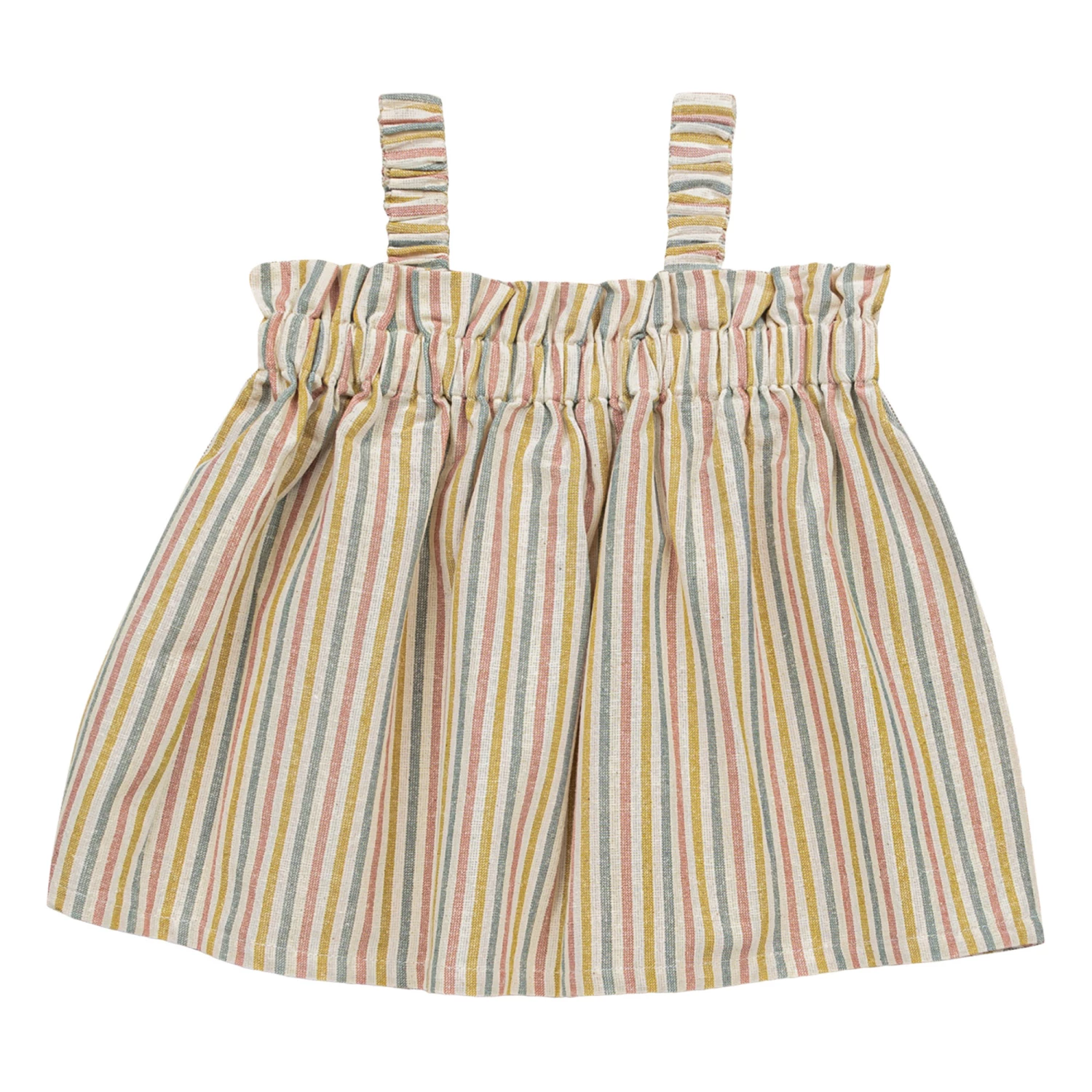- Elastic band(s), Top stitched, Flowy, Lightweight, Contrasting top stitch, Ruffled, Elastic straps, Comfortable
