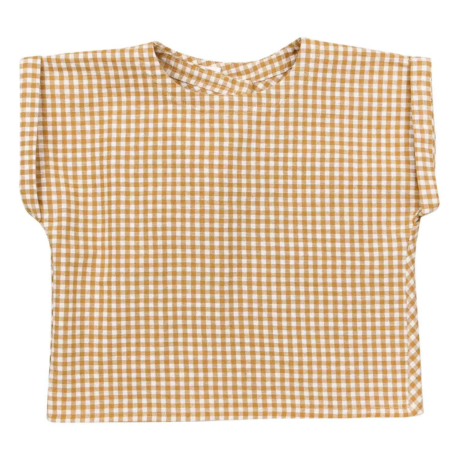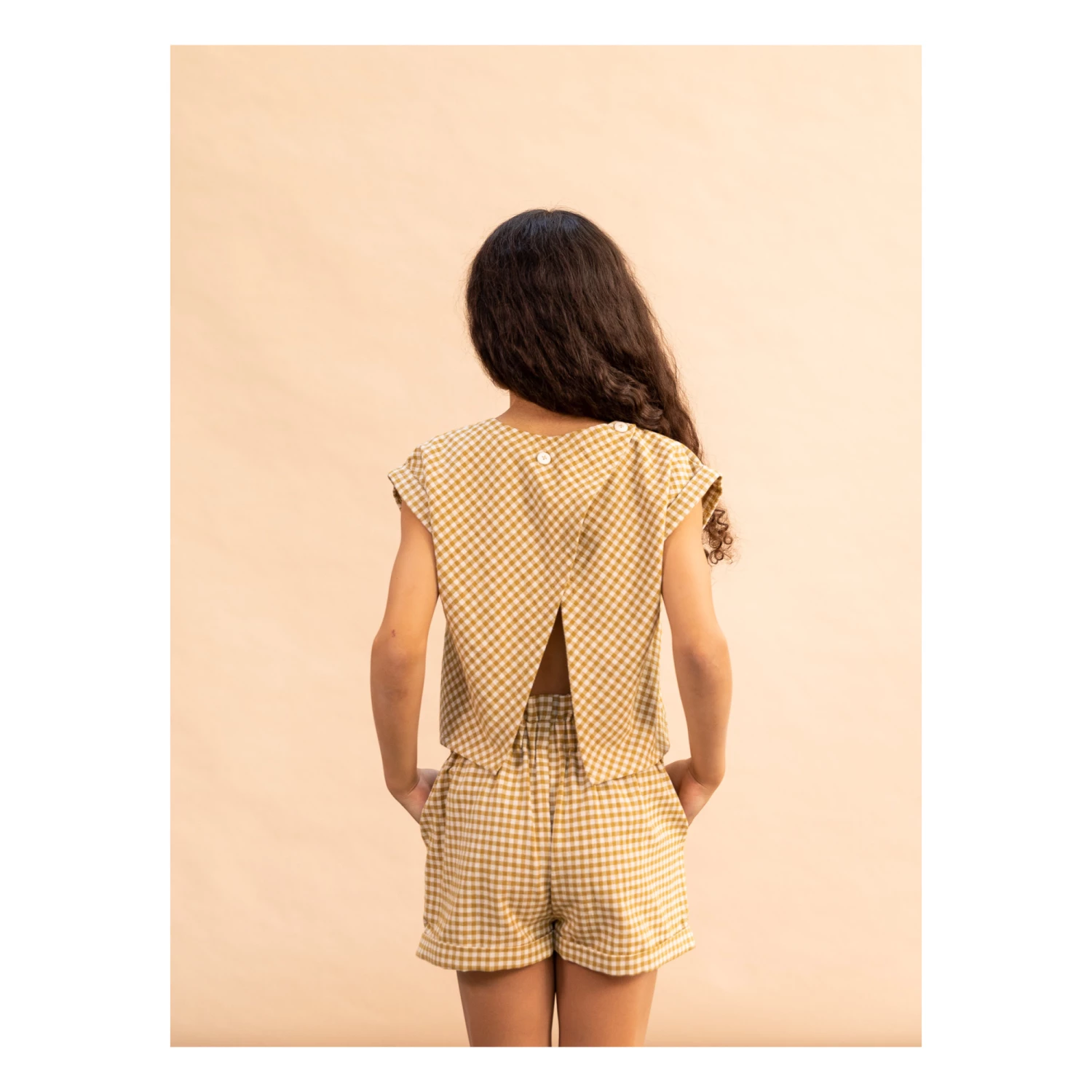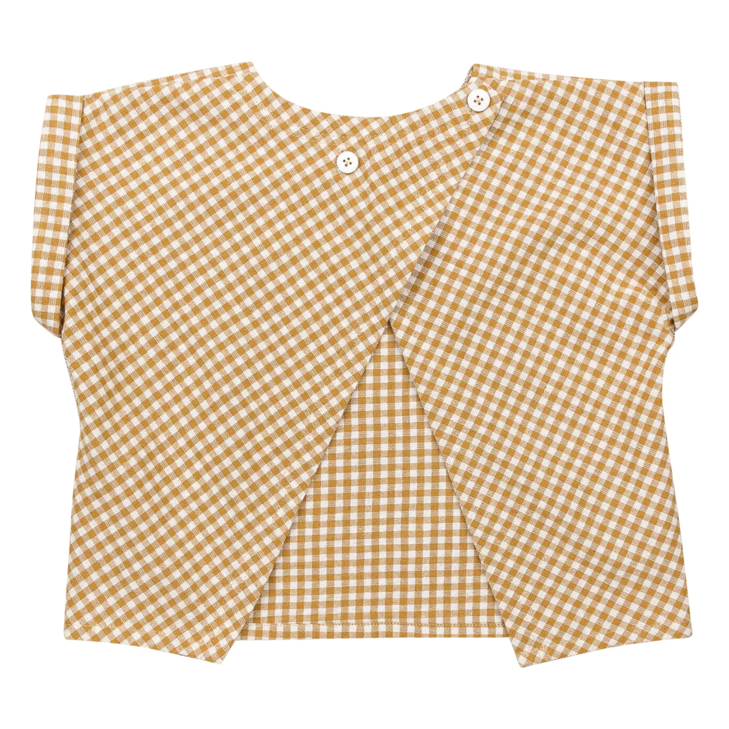 - Details : Checked, Round Neck, Crossed closing, Button back, Opening at the back, Sleeved lapel