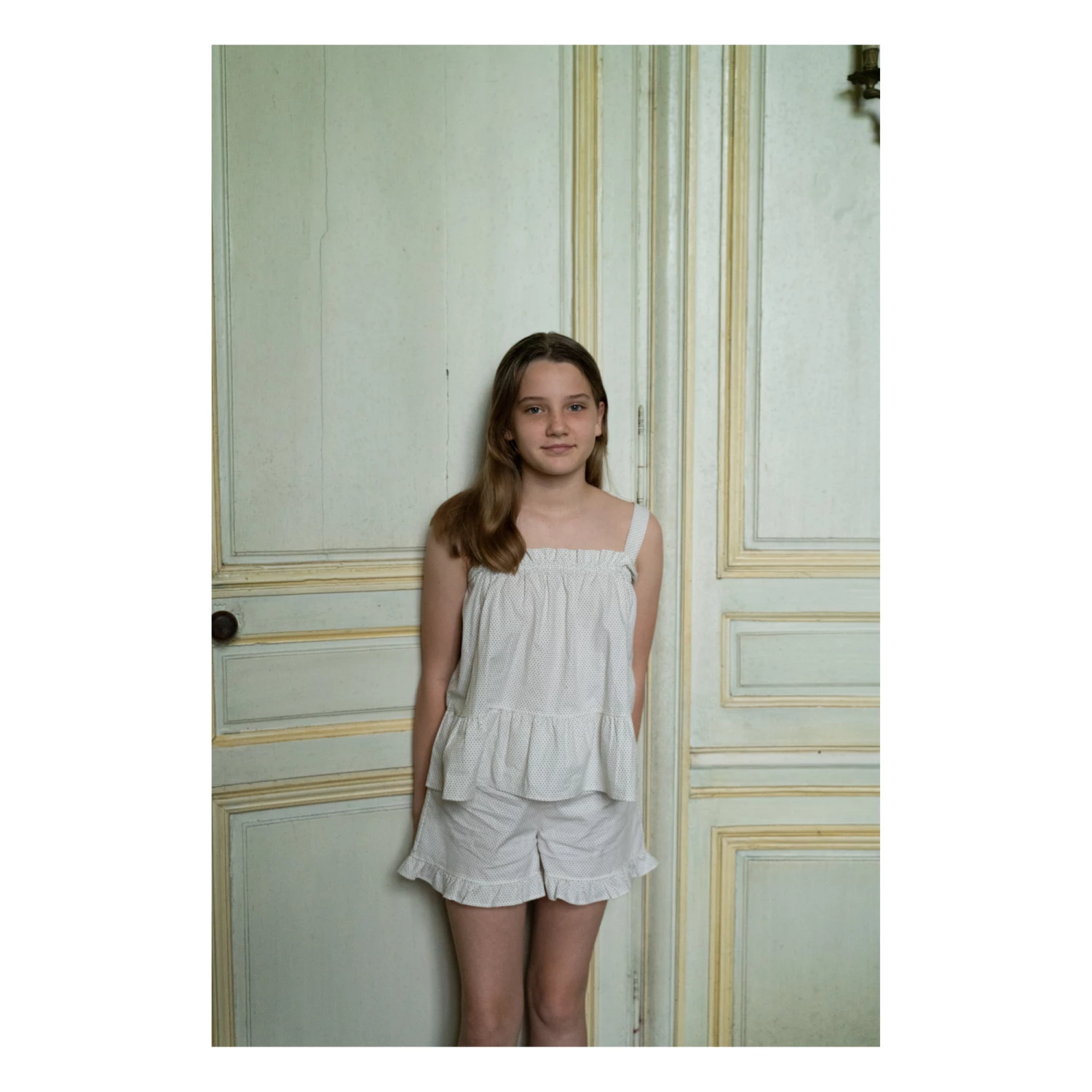 - Soft, Square neck, Gathered neckline, Top stitched, Frilled edges, Elasticated waist, Thin straps