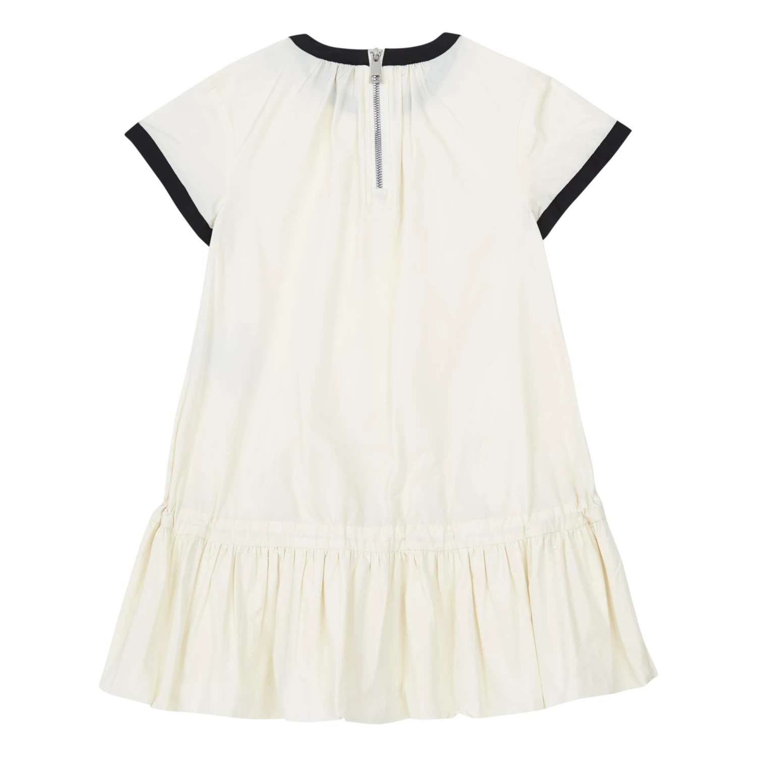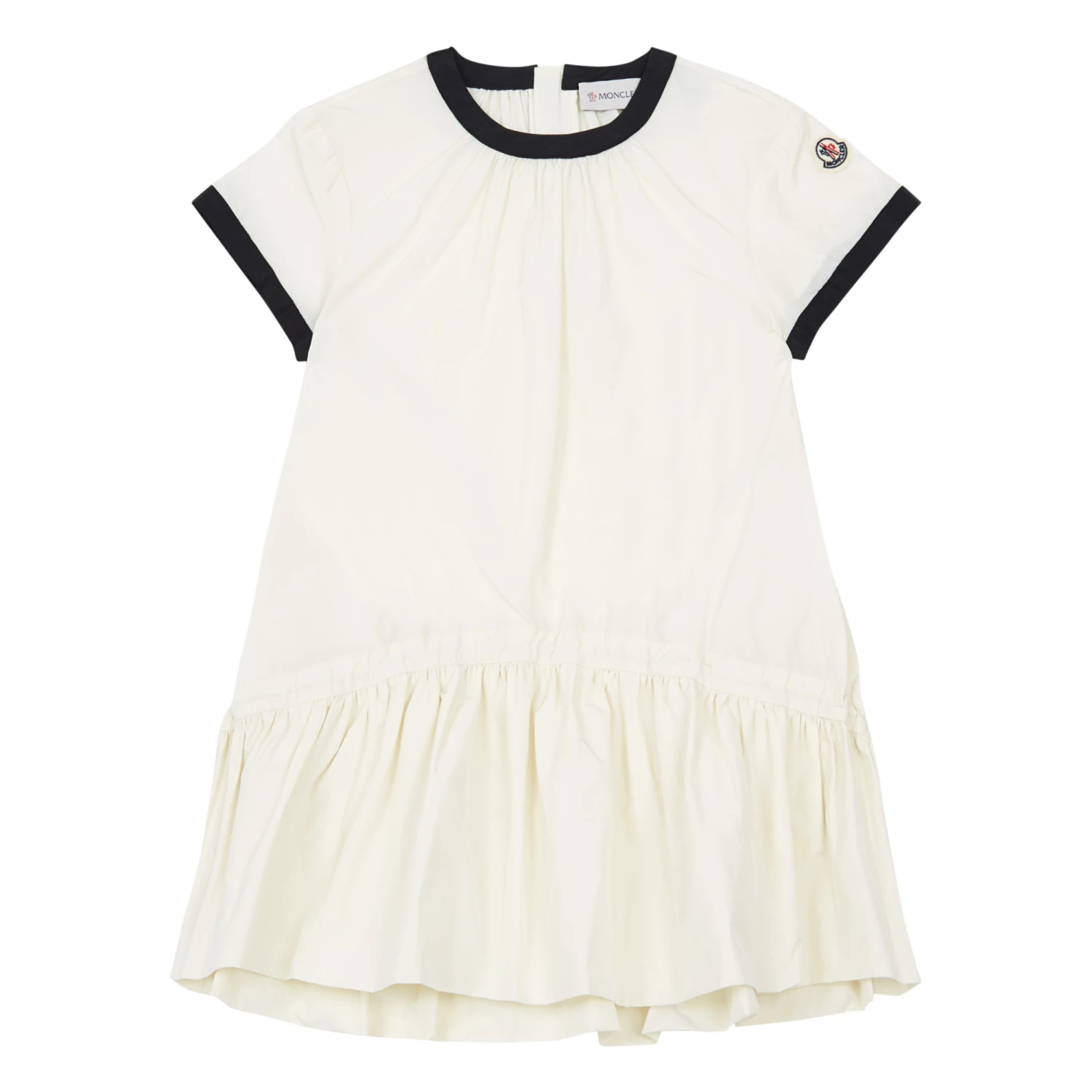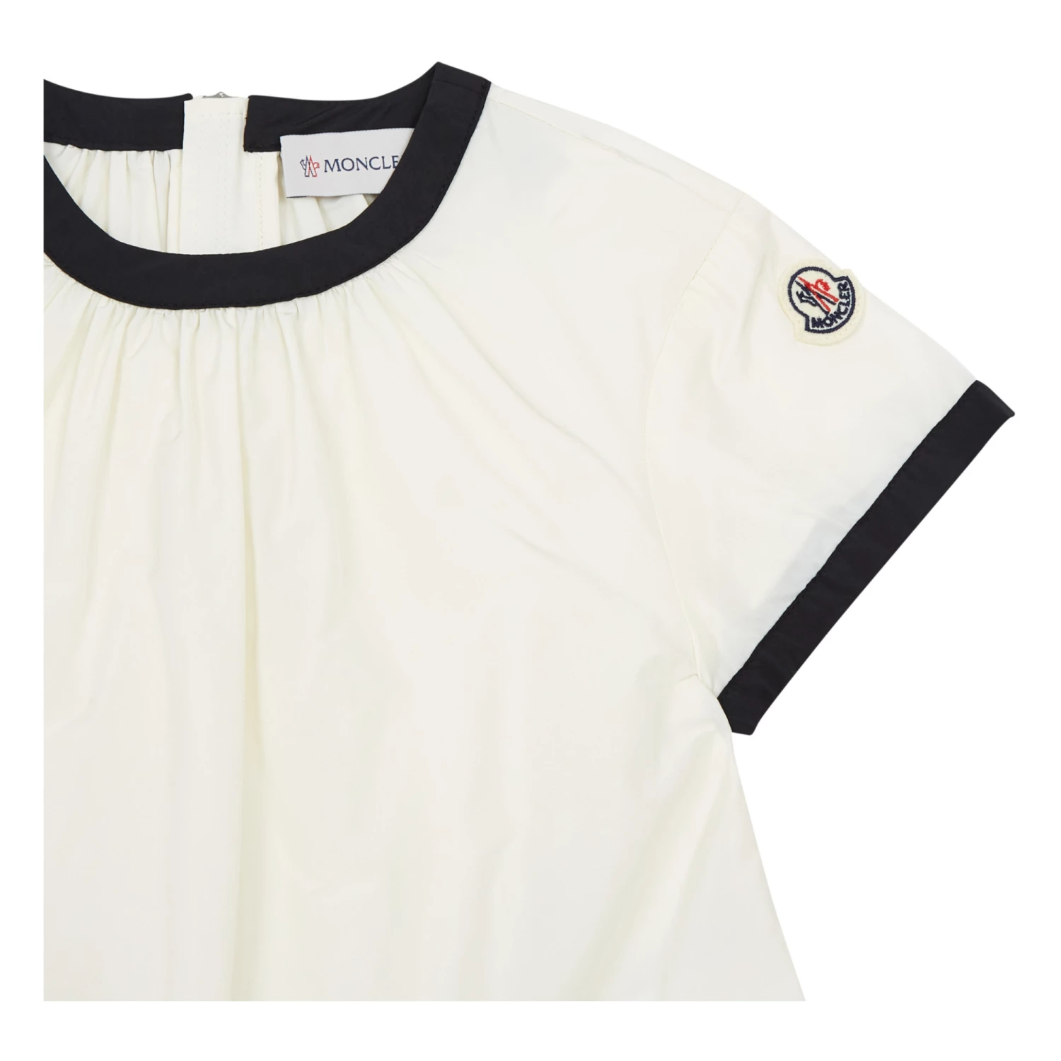 - Gathered detail, Felt logo, Gathered neckline, Crew neck, Top stitched, Lightweight and comfortable, Slightly transparent, Short sleeves, Side pockets, Elasticated waist, Contrasting edges