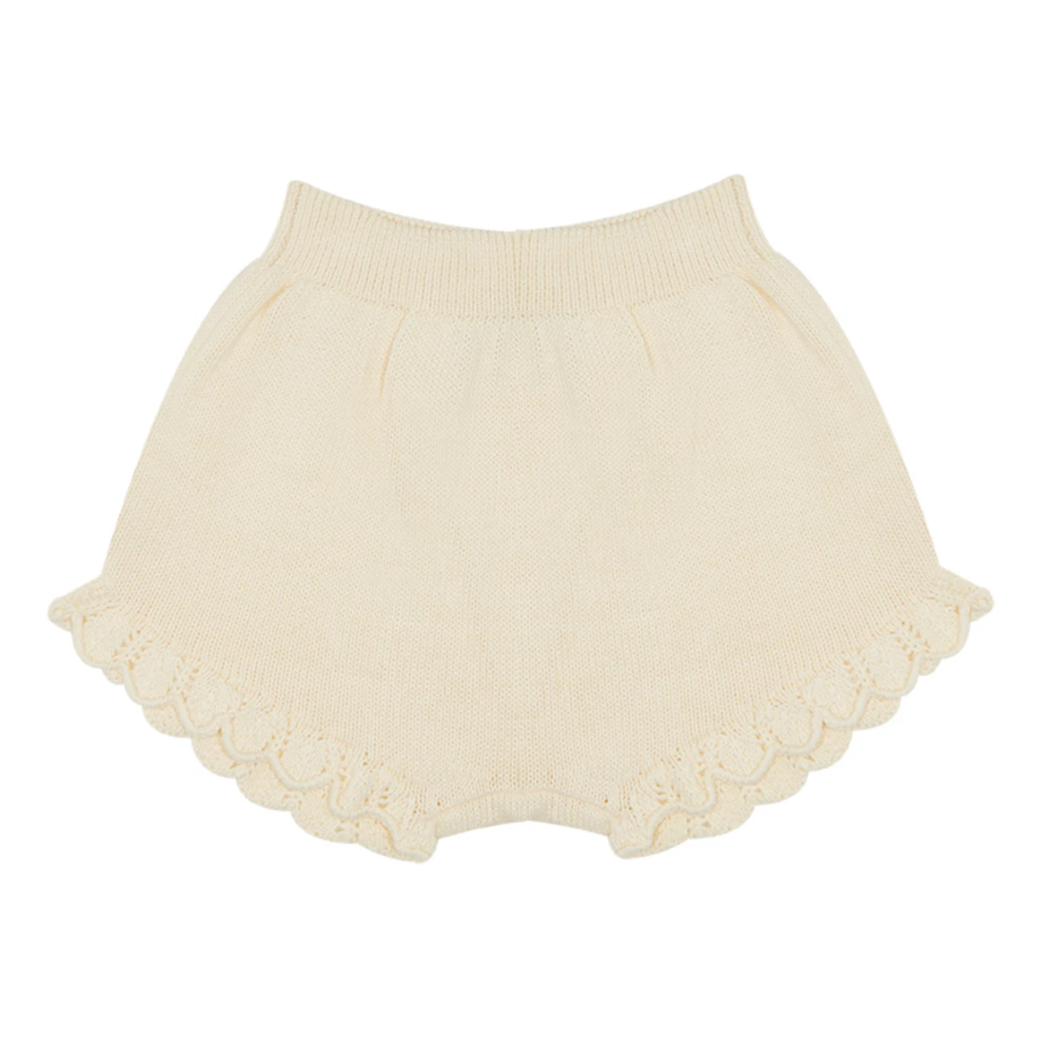 - Flowy, Frilled edges, Elasticated waist, Decorative knit, Openwork knit