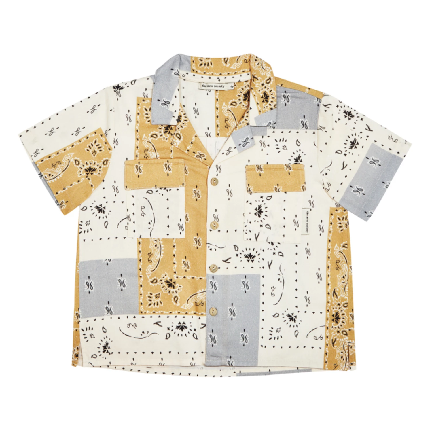 - Front button(s), Patchwork print