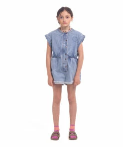 Promo 😍 Embroidered Chambray Shirt 👗 Dress Denim blue Tartine et Chocolat Fashion Children 🔥