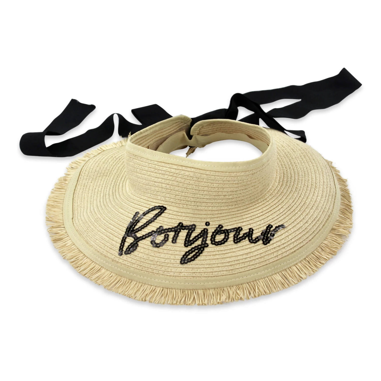 - Sparkly, Fringed edges, Embroidery, Curved visor