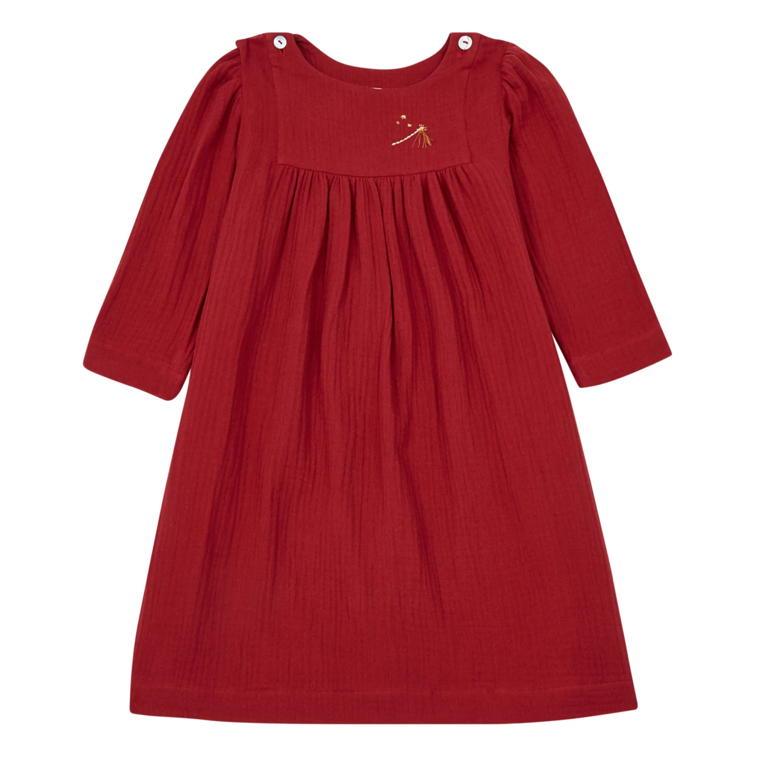 - Long sleeves, Gathered at the waist, Embroidery