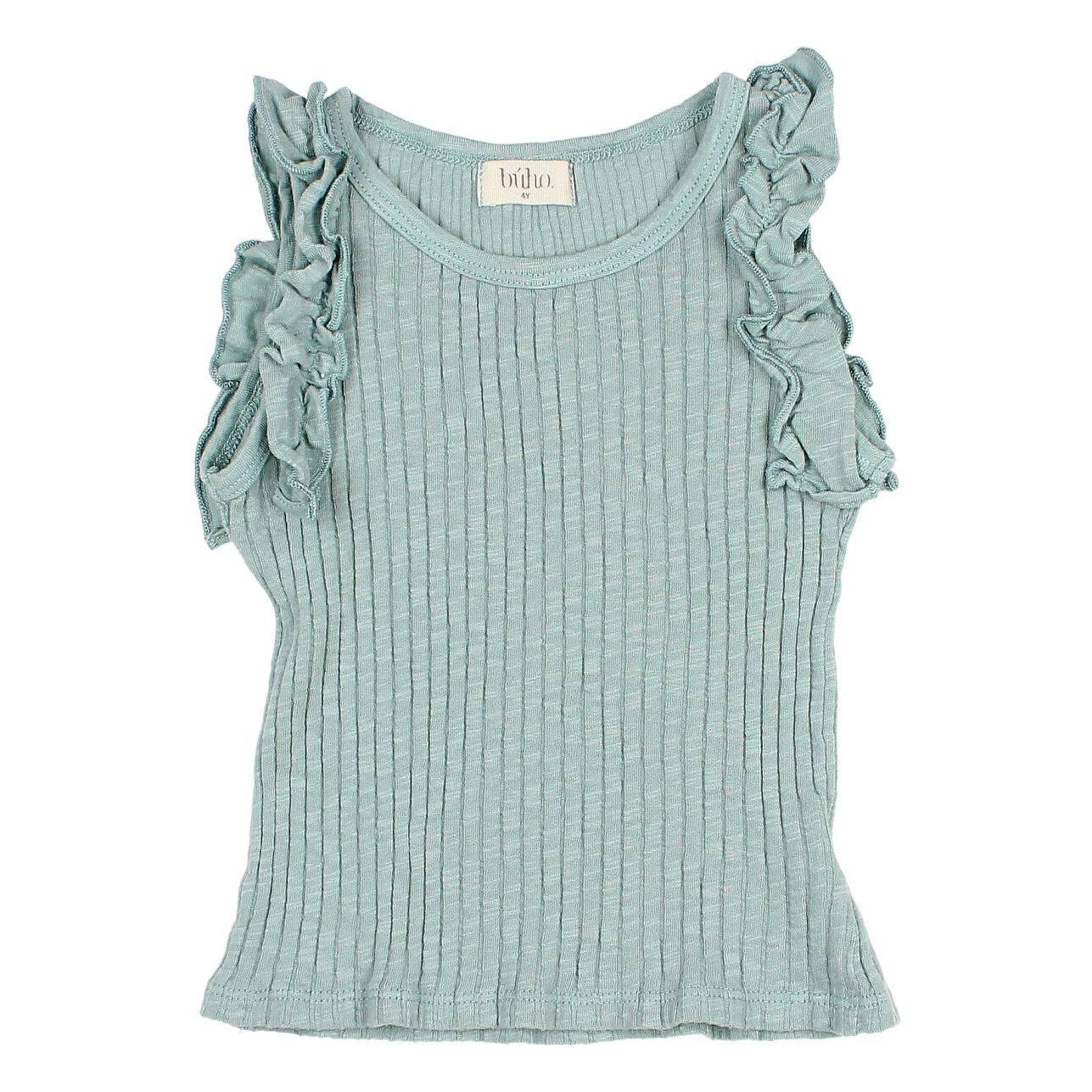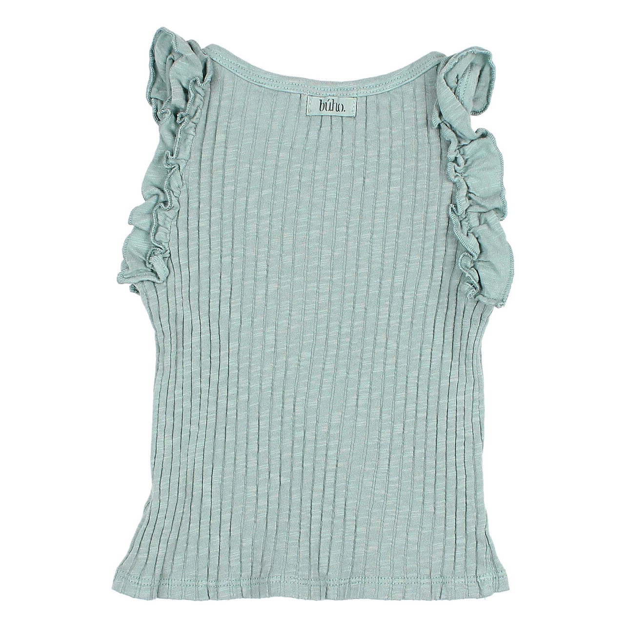 - Ribbed, Soft, Frilled sleeves, Crew neck, Top stitched, Sleeveless, Ribbed neckband, Comfortable