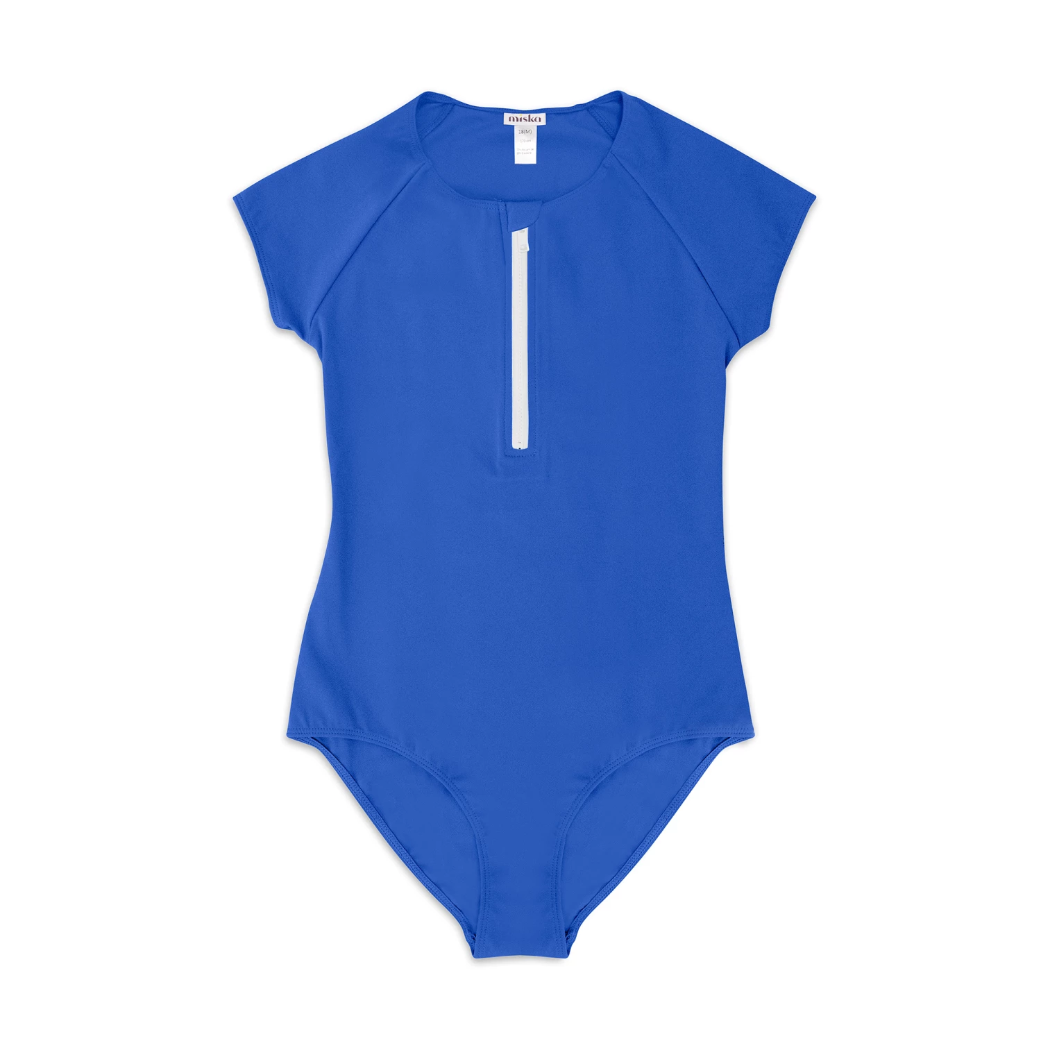 - Details : Round Neck, Short raglan sleeves, Zip, A revolutionary material that’s ultra stretchy, seamless and fast-drying., This material offers extreme comfort and sun protection, while also being environmentally friendly., Delivered with its pouch, Interior protective strip along the zipper, Lined, Ideal for long activity-filled days by the beach, Tonal logo affixed on the back