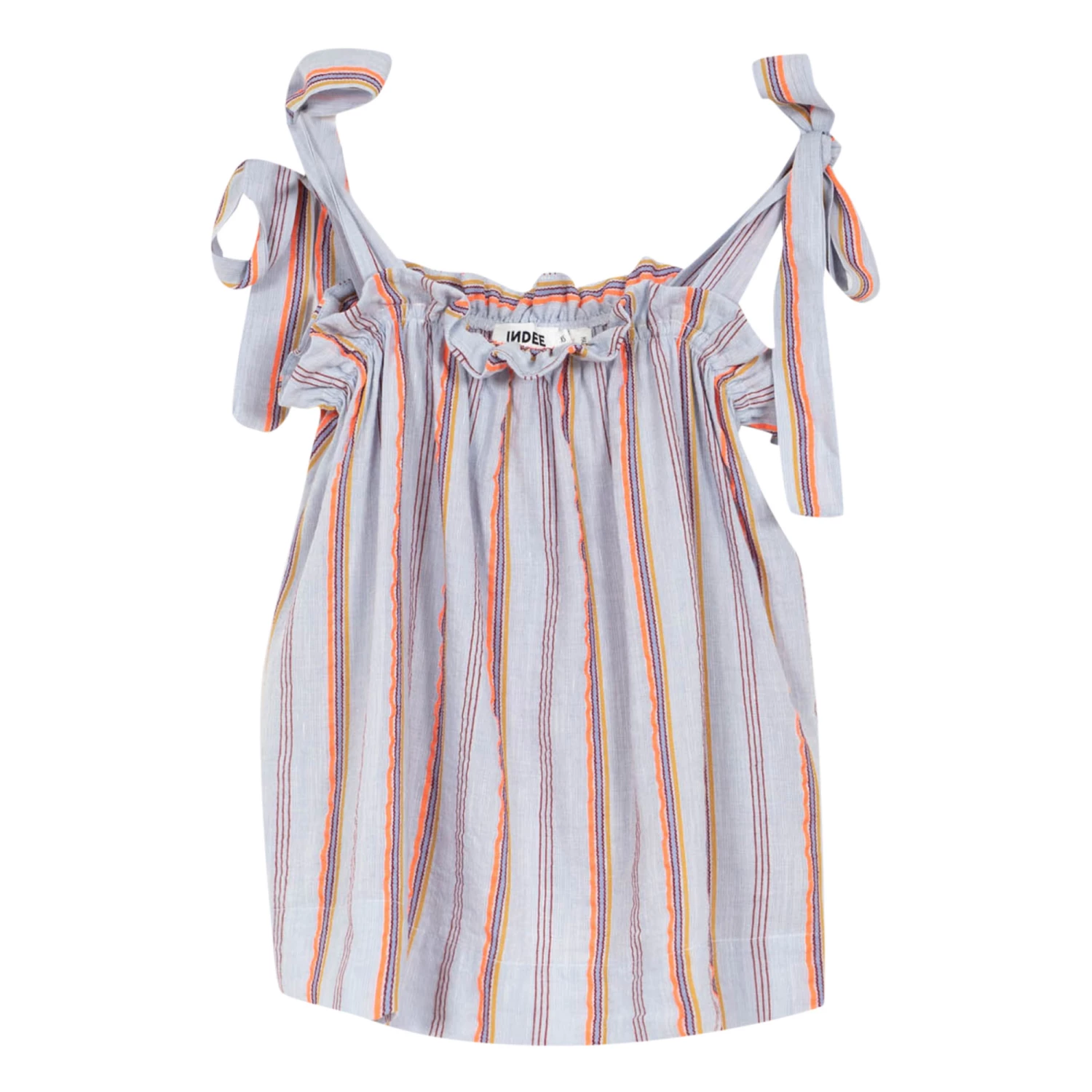 - Elasticated neckline, Gathered neckline, Lightweight and comfortable, Tie up straps