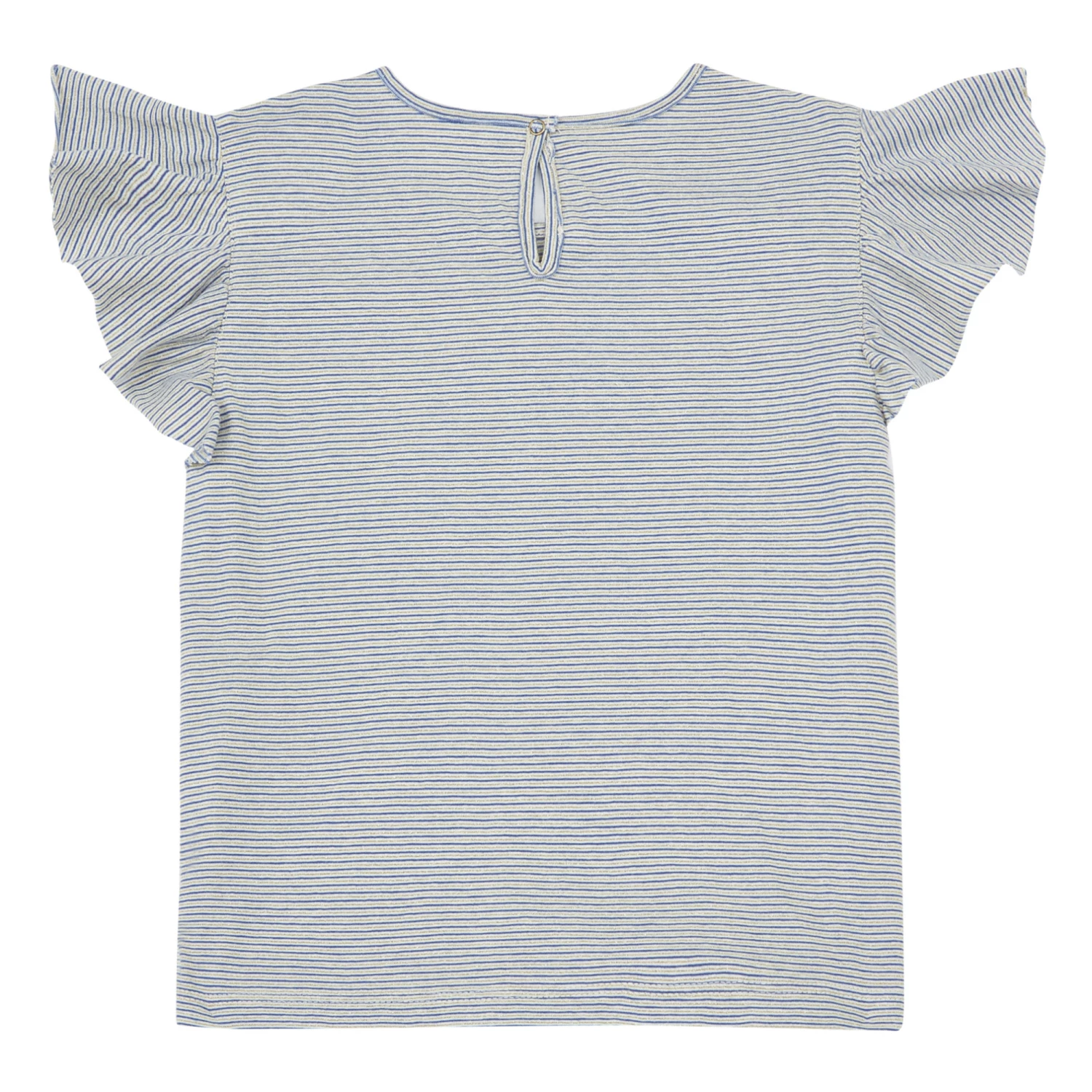 - Gold detail(s), Frilled sleeves, Crew neck, Top stitched, Straight edges