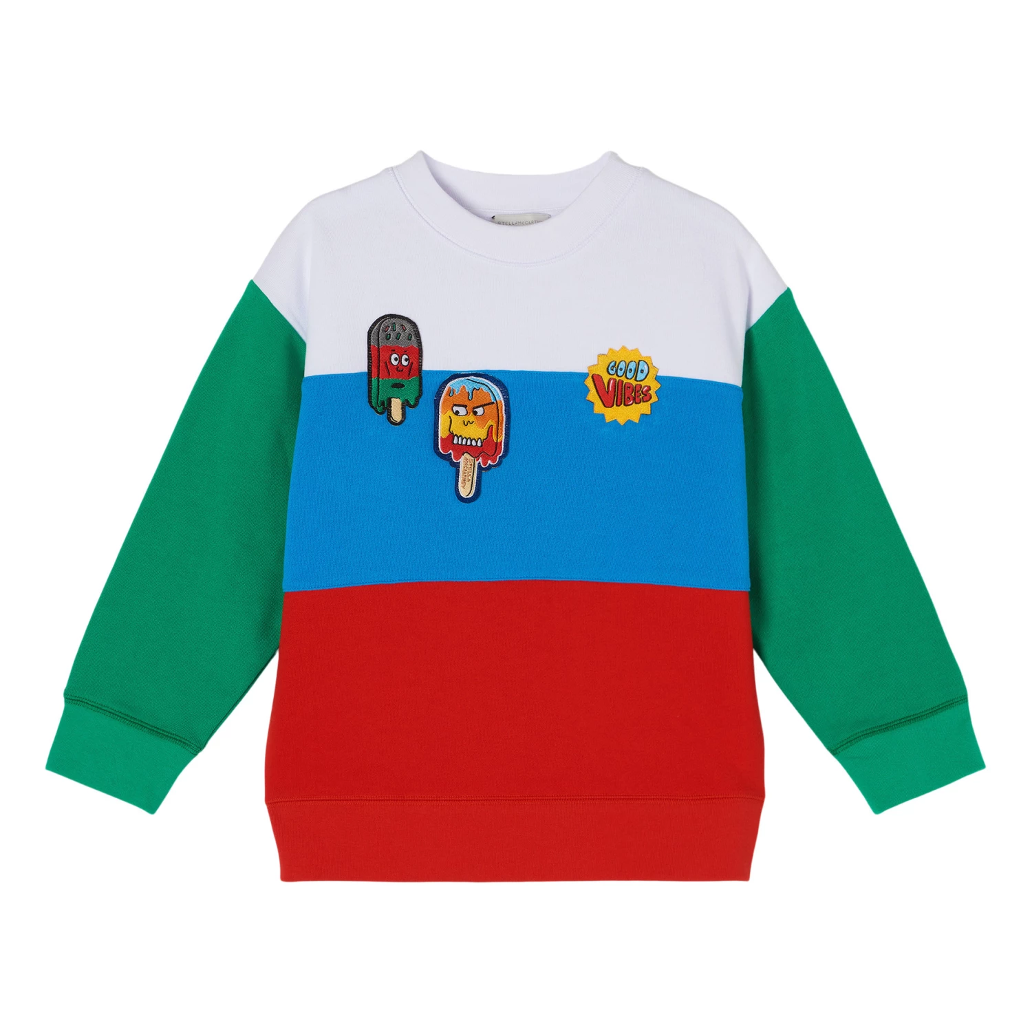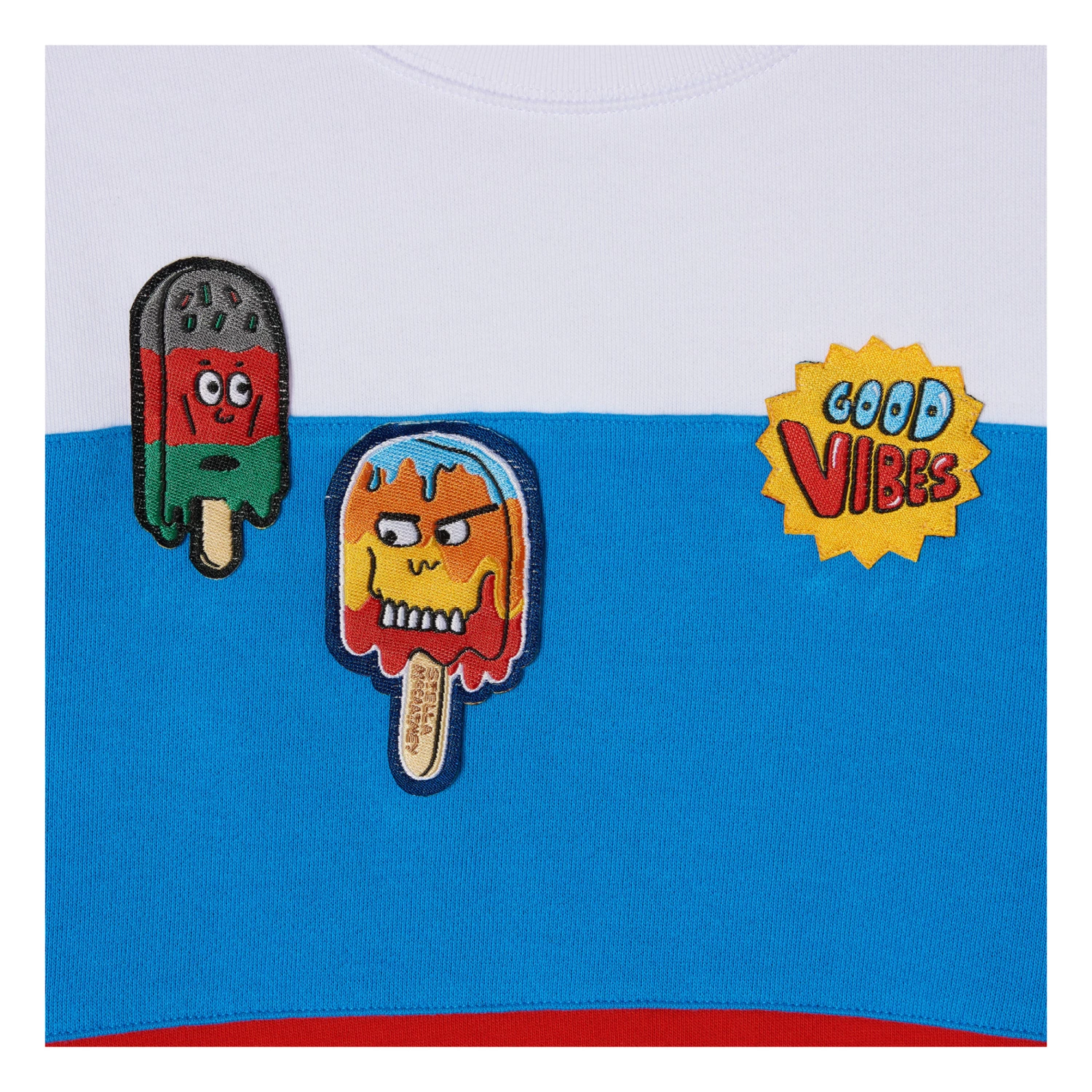 - Low armholes, Crew neck, Long sleeves, Ribbed cuffs, Wide sleeves, Tricolour, Embroidery, Ribbed neckband
