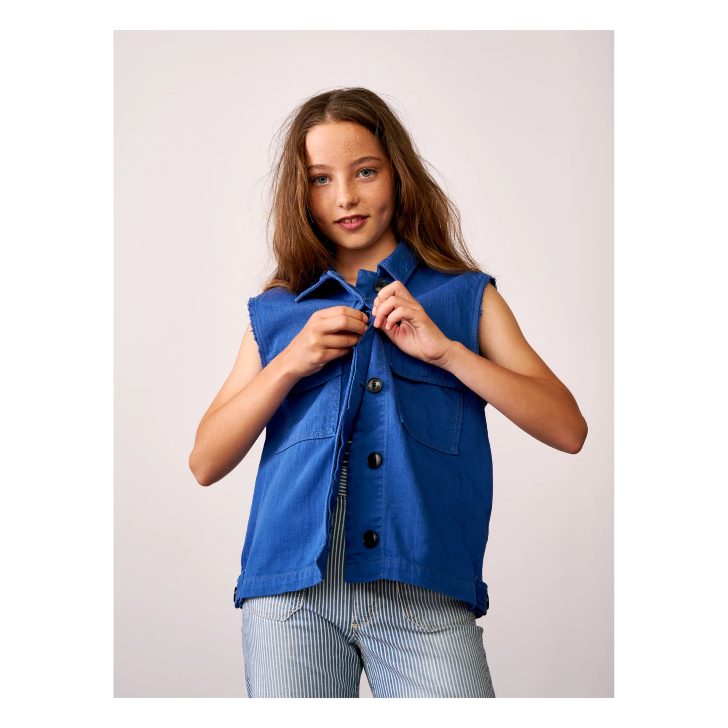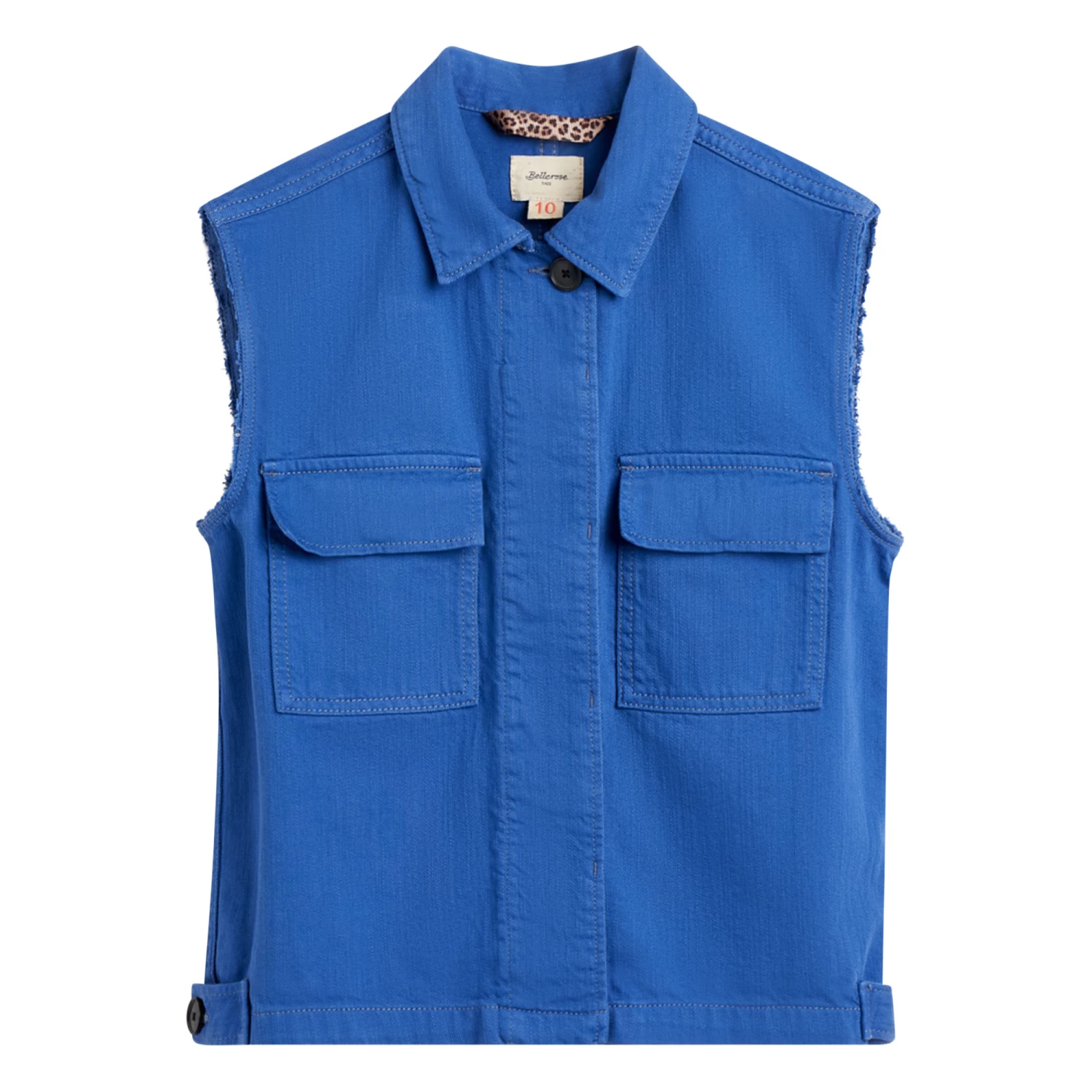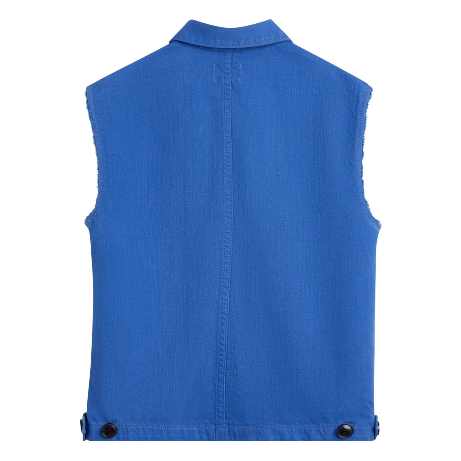 - Top stitched, Straight edges, Press stud flap pocket(s), Sleeveless, Shirt collar