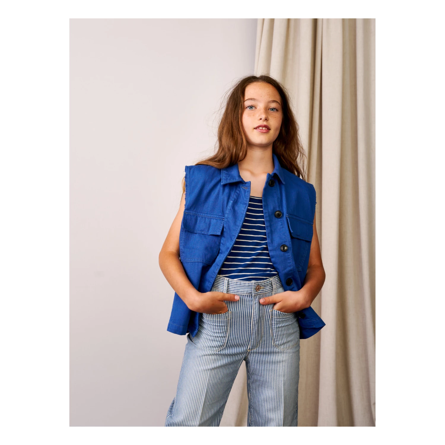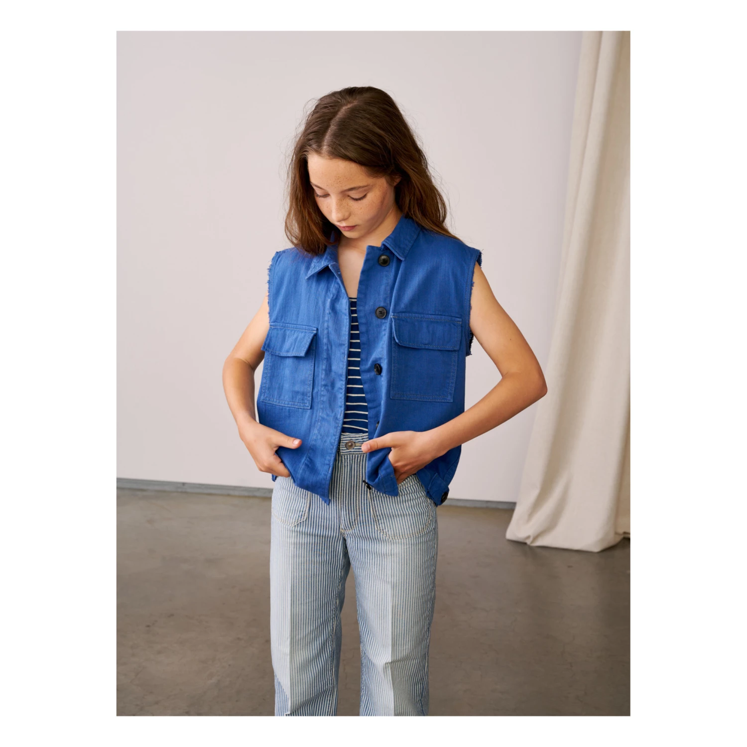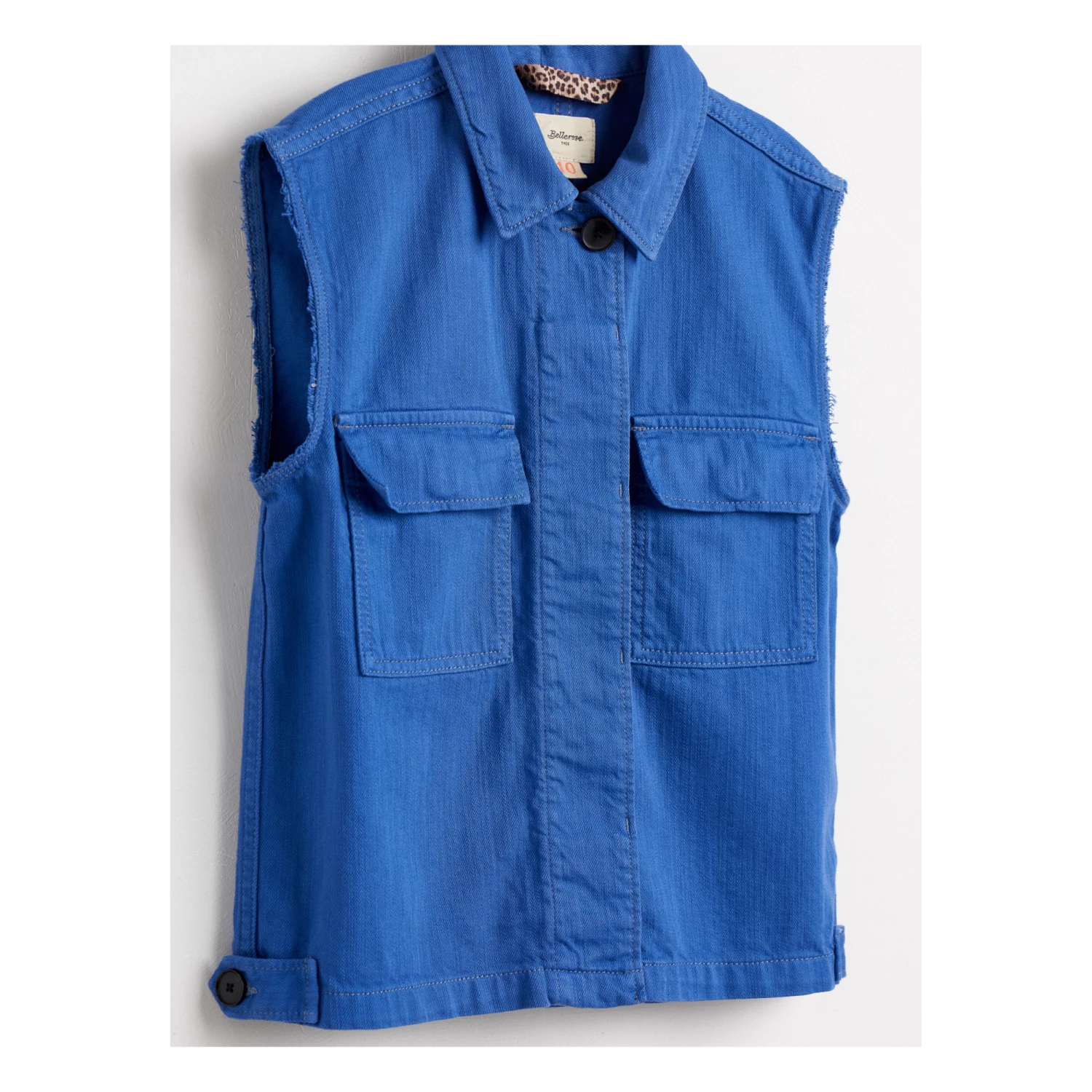 - Top stitched, Straight edges, Press stud flap pocket(s), Sleeveless, Shirt collar