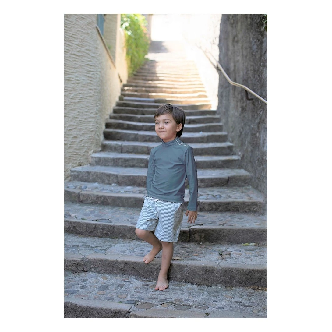 - Details : High collar, Long sleeves, Neckline with snap fasteners, Quick drying