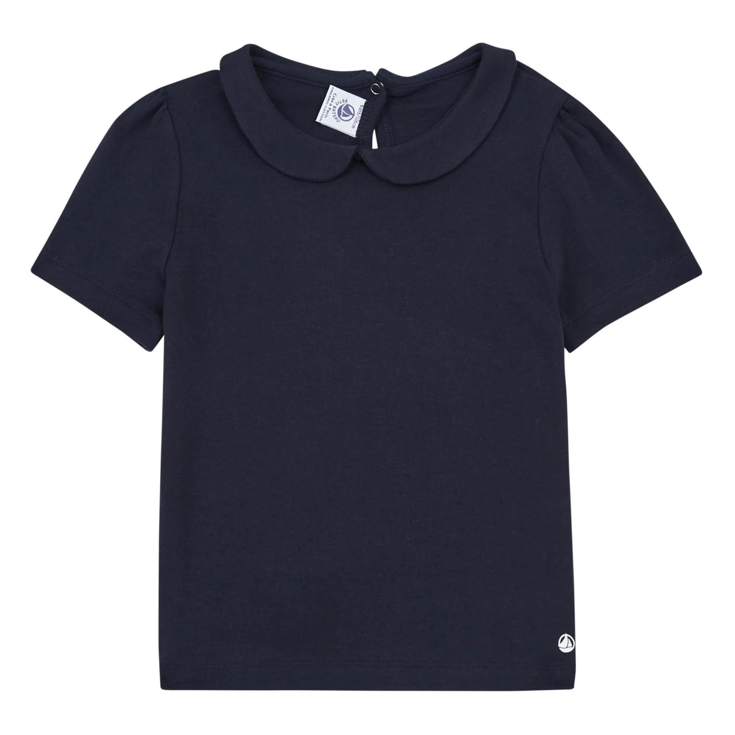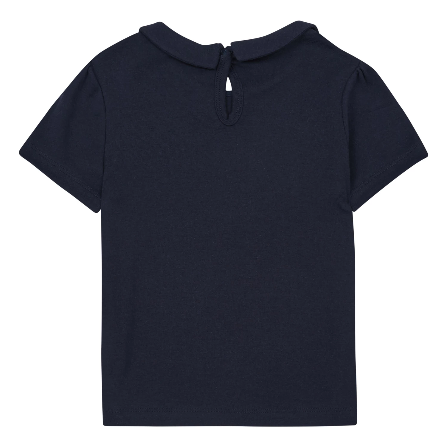 - Soft, Embroidered logo, Short sleeves, Gathered at shoulders, Peter Pan collar, Comfortable