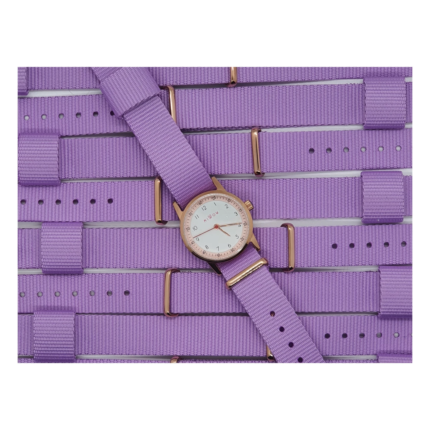 - Details : Stainless steel buckle, Adjustable, Nickel free, MIYOTA Quartz Movement, Mineral glass, Waterproofing 5 bar, Machine washable nylon bracelet