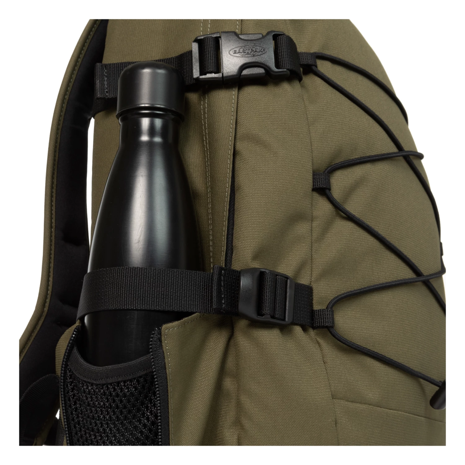 - Security pockets, main compartment, padded laptop sleeve, ergonomic padded shoulder straps, padded back with security pocket, key clip, leather details