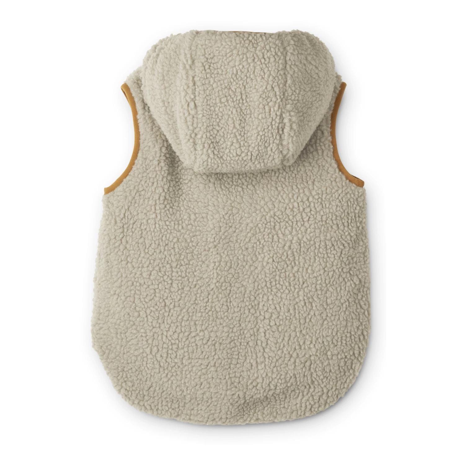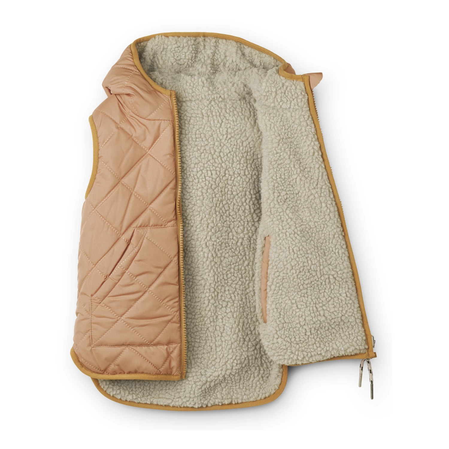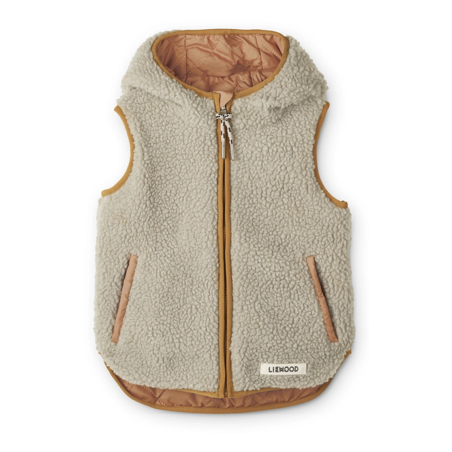 - Elasticised hood, Padded outside, Kangaroo pocket, Sleeveless, Sewn-in brand label, Tricolour, Hood, Comfortable
