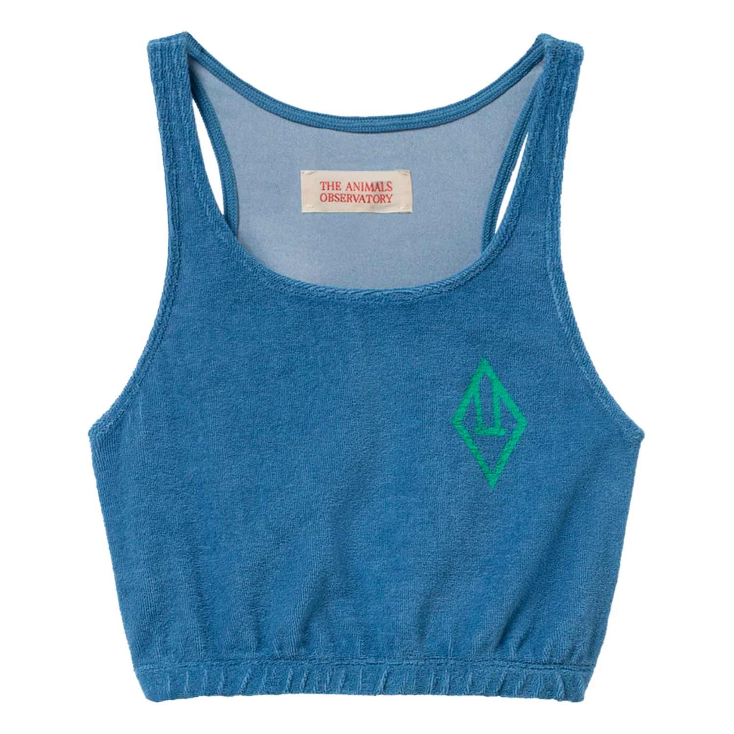 - Low armholes, Crew neck, Elastic band below the bust for support., Logo on front, Sleeveless