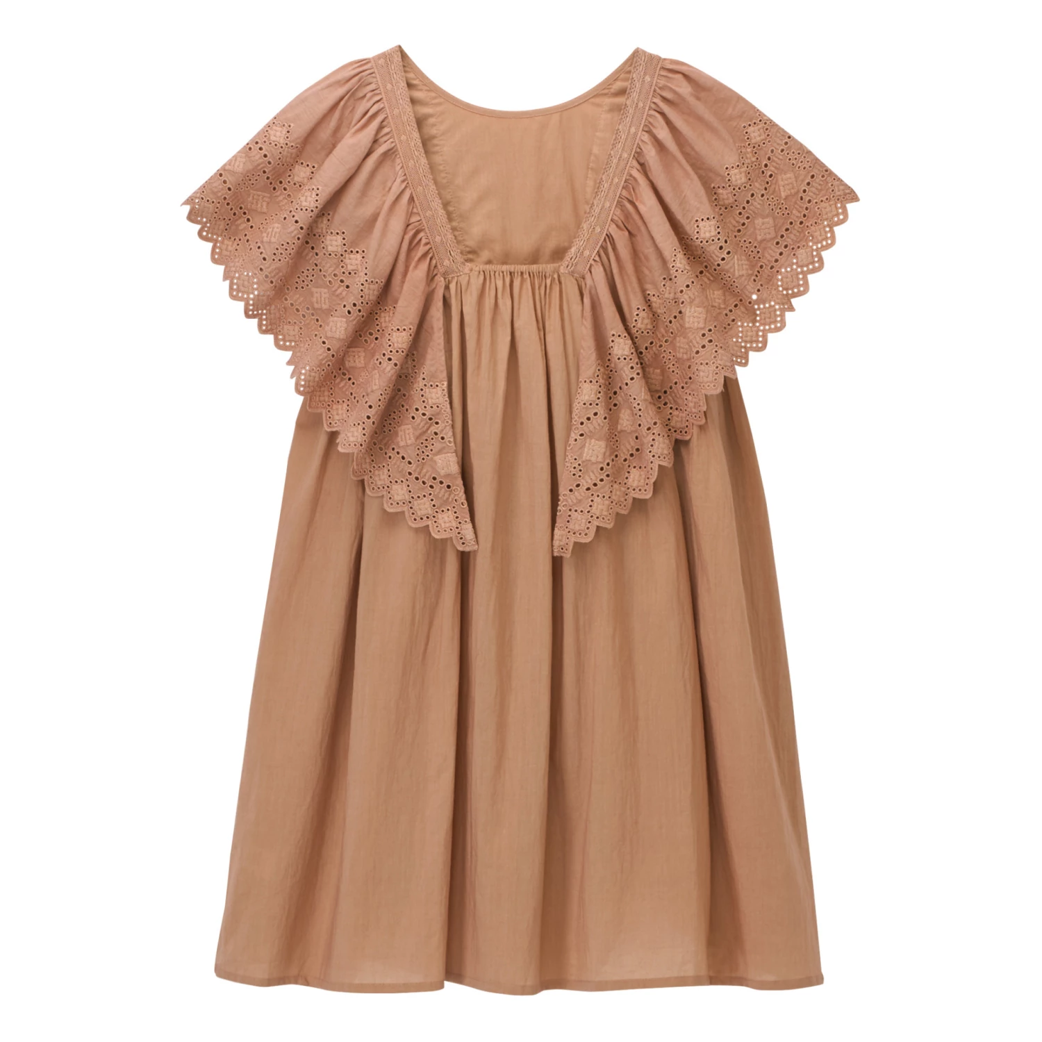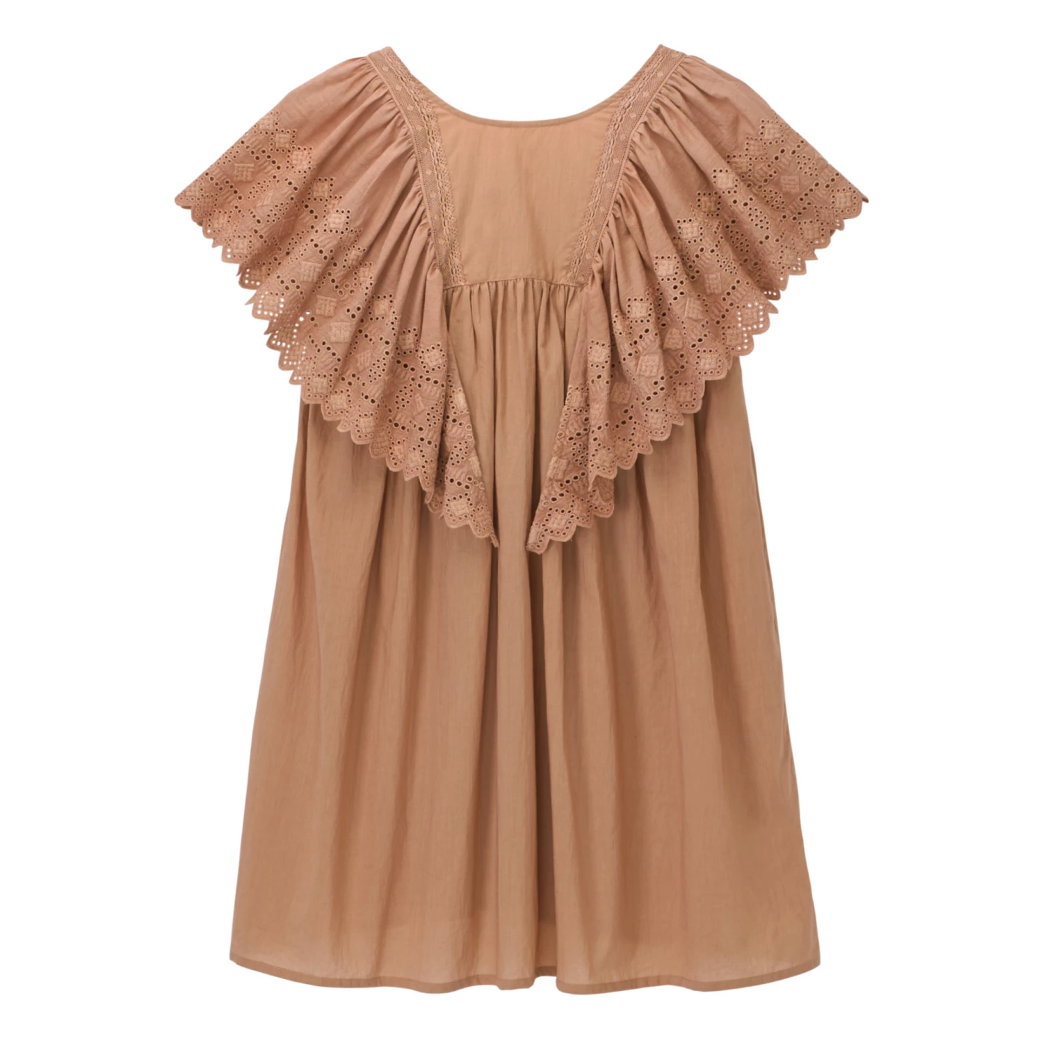 - Lace details, Elastic at back, Frilled yoke, Crew neck, Scalloped edges, Pleated, Embroidery