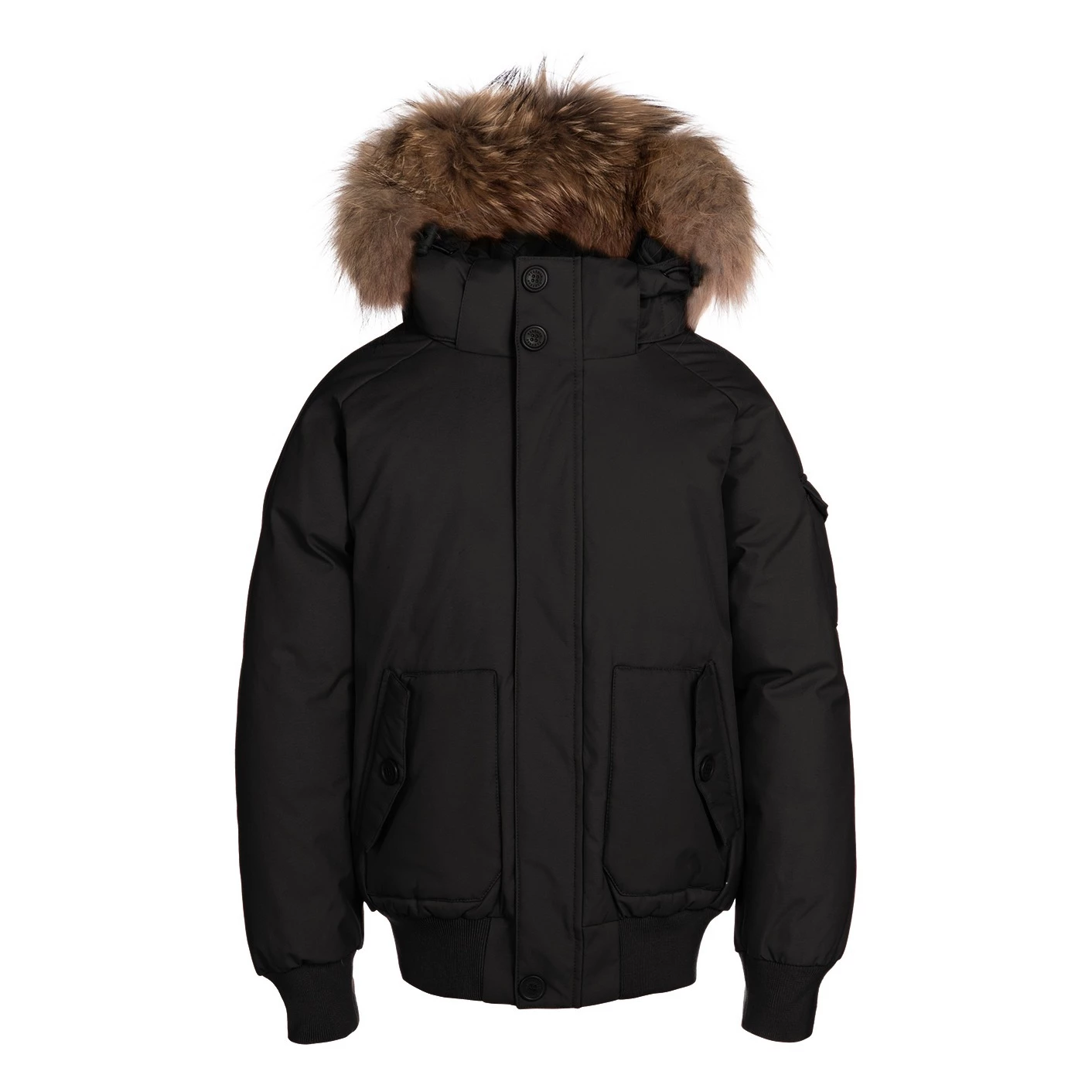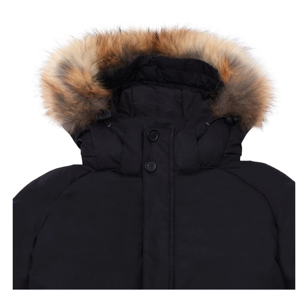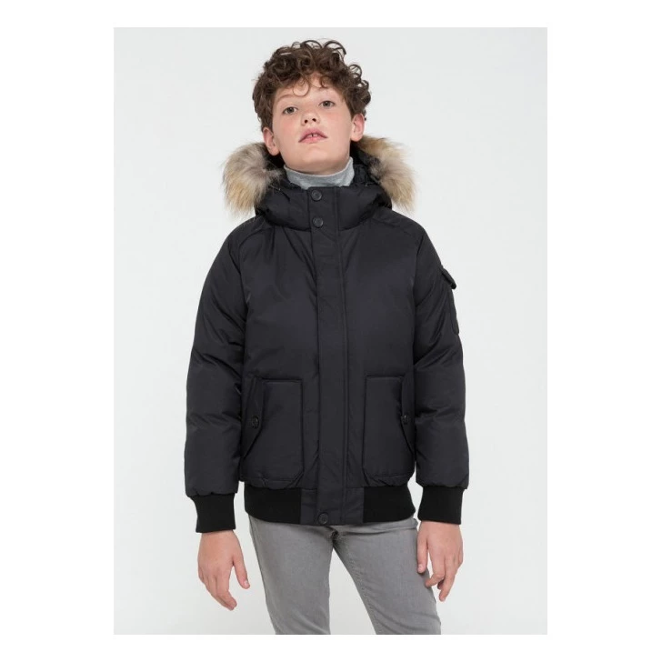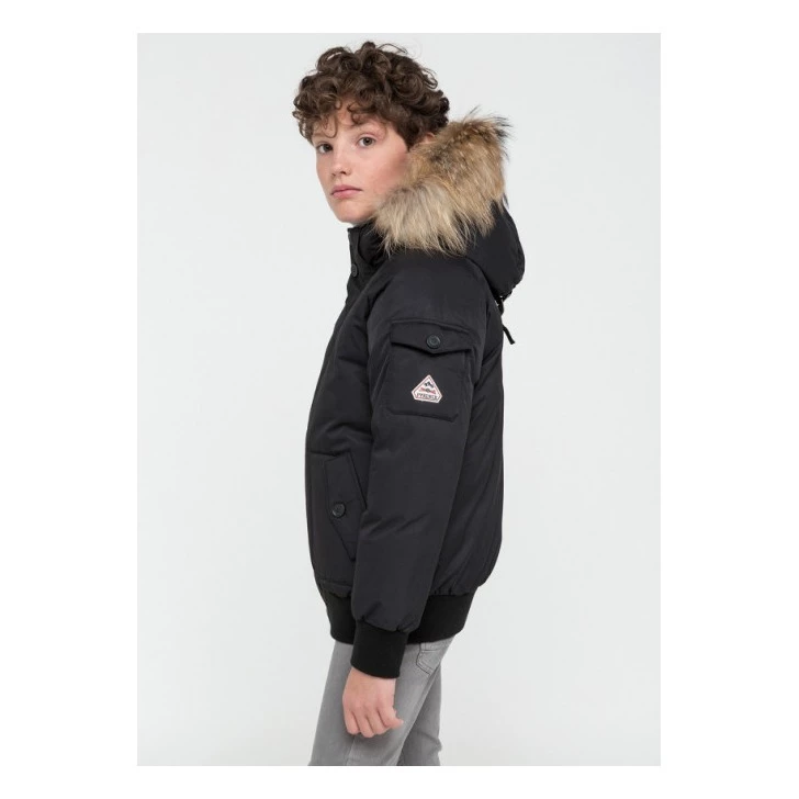 - Details : High collar, with removable hood, Long raglan sleeves, Flap pockets, Pocket on sleeve, Interior zip up pocket, Zip under button tab, Buttons on the collar, Removable fur, Padded, Waterproof, Water repellant, Tightened at the wrist, Pulled in at the bottom for more volume, Ribbed edges, Drawstrings for hood