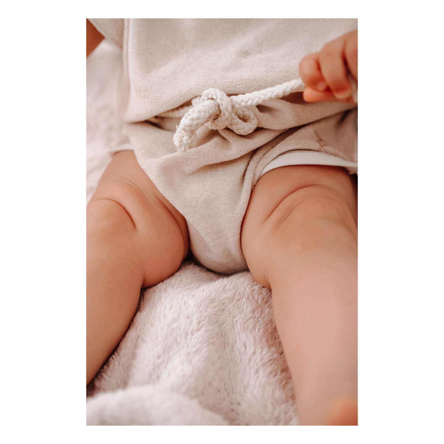 - Details : Round Neck, Short sleeves, Tightening cord, Popper buttons at crotch, Elasticated back, Soft