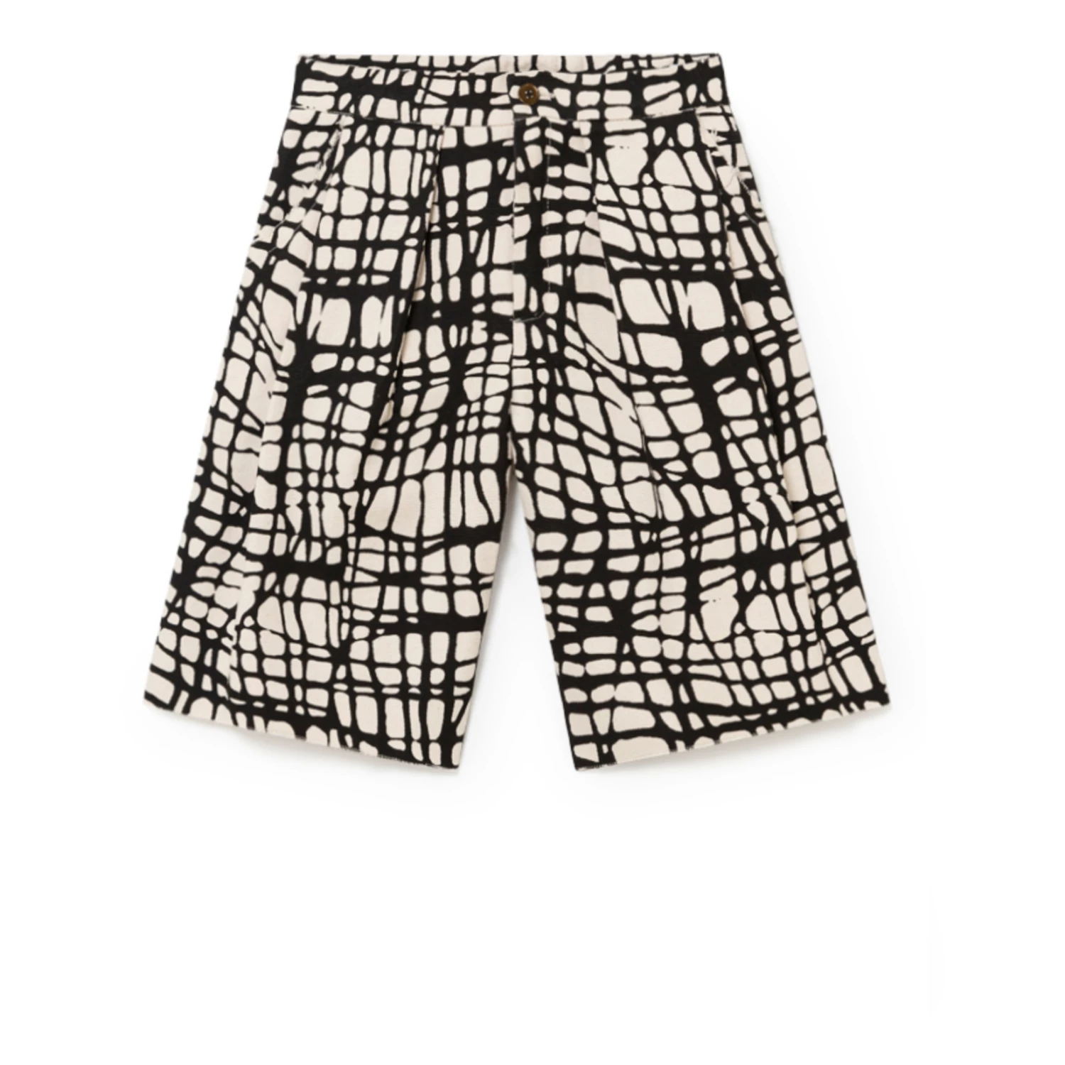 - Elastic band(s), Straight edges, Contrasting top stitch, Belt loops at waist, Side pockets, Inverted pleats, Adjustable