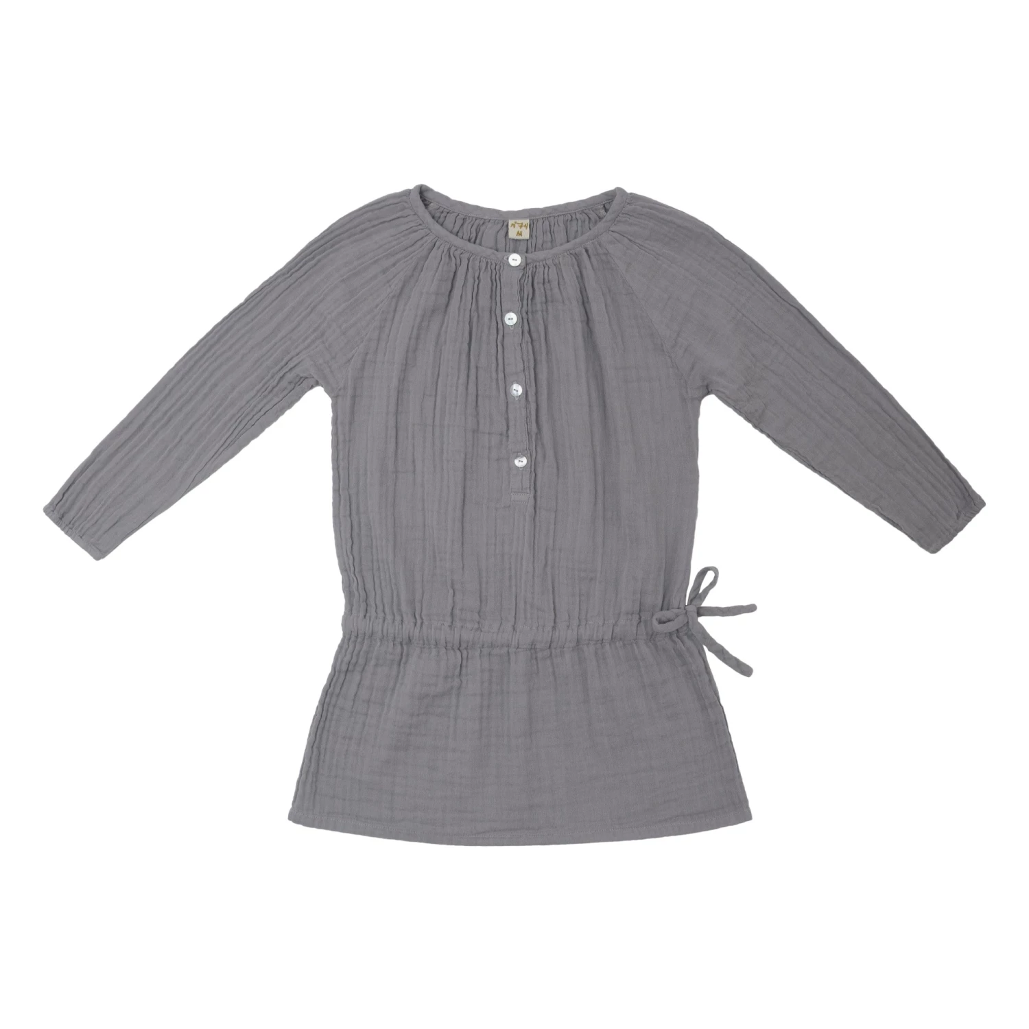 - Details : Round neckline, Long sleeves, Interior drawstring, Button tab