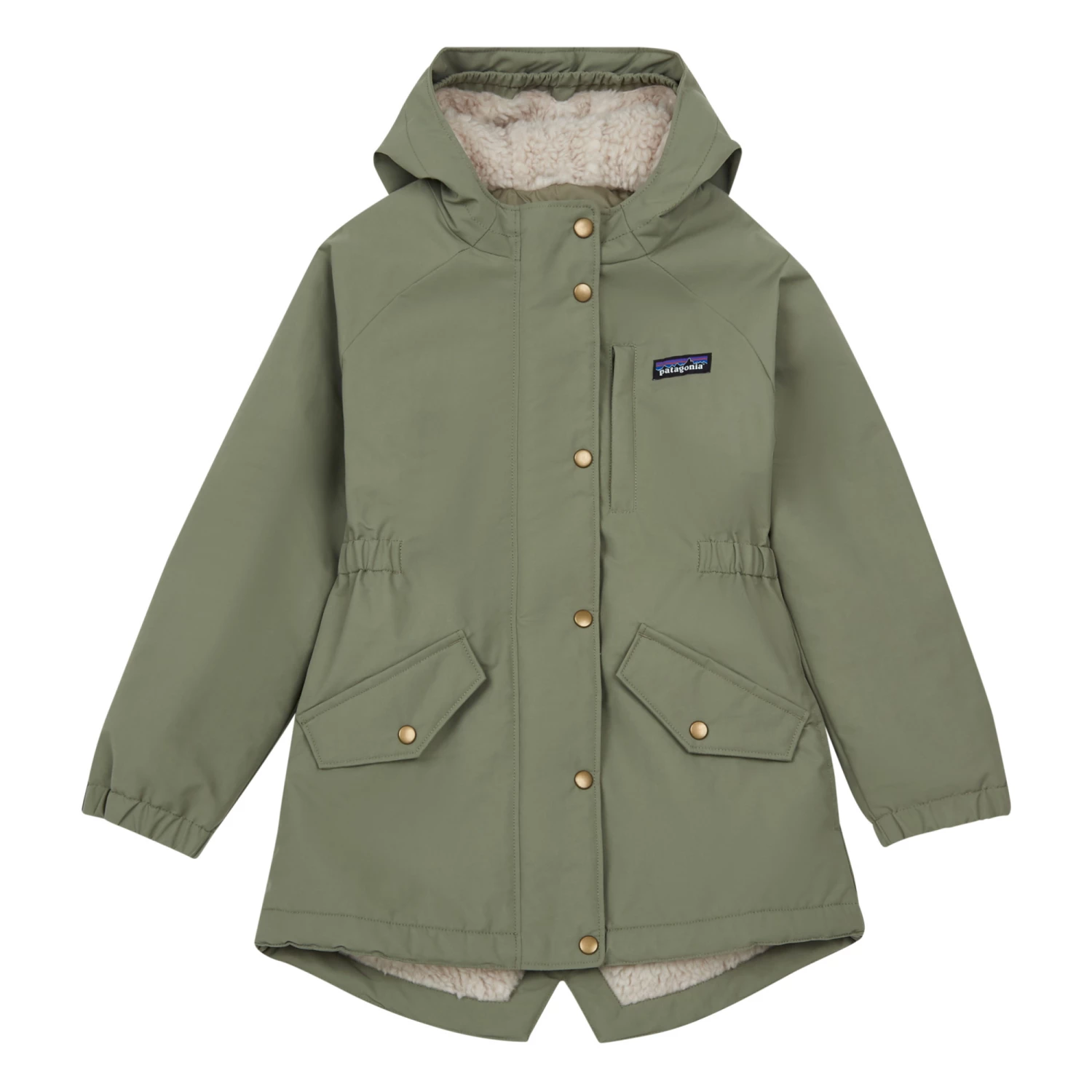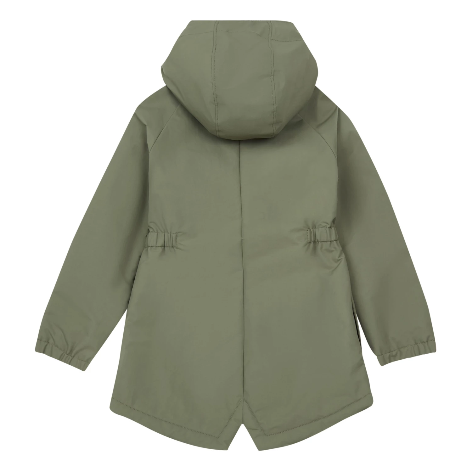 - Lined, Elasticised hood, Warm, Long sleeves, Longer at the back, Breast pocket(s), Press stud flap pocket(s), Zipped pocket(s), Elastic cuffs, Top stitched edges, Elasticated waist, Sewn-in brand label, Lined hood, Turtleneck